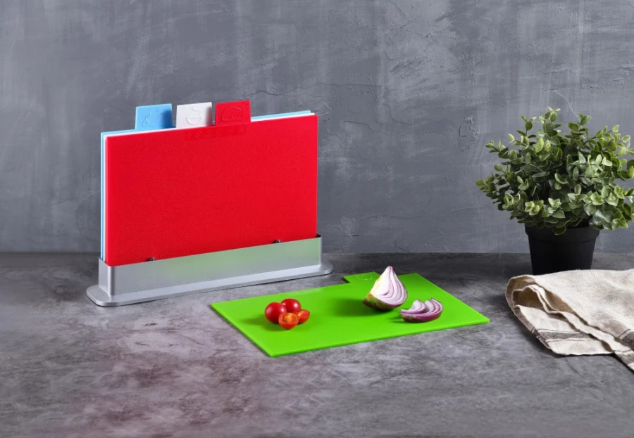 Набір дошок для нарізання Bergner Colors складається з п’яти предметів, виготовлених з високоякісного пластику, що забезпечує їхню легкість та зручність у використанні. Кожна дошка має свій колір, що дозволяє легко організувати процес приготування їжі. Вироби виконані у різнокольоровій гамі, що додає яскравих акцентів на вашій кухні. Незважаючи на те, що дошки легко миються, рекомендується ручне миття для збереження первісного вигляду. Комплект включає підставку для зручного зберігання, що робить цей набір практичним та функціональним рішенням для будь-якої кухні.