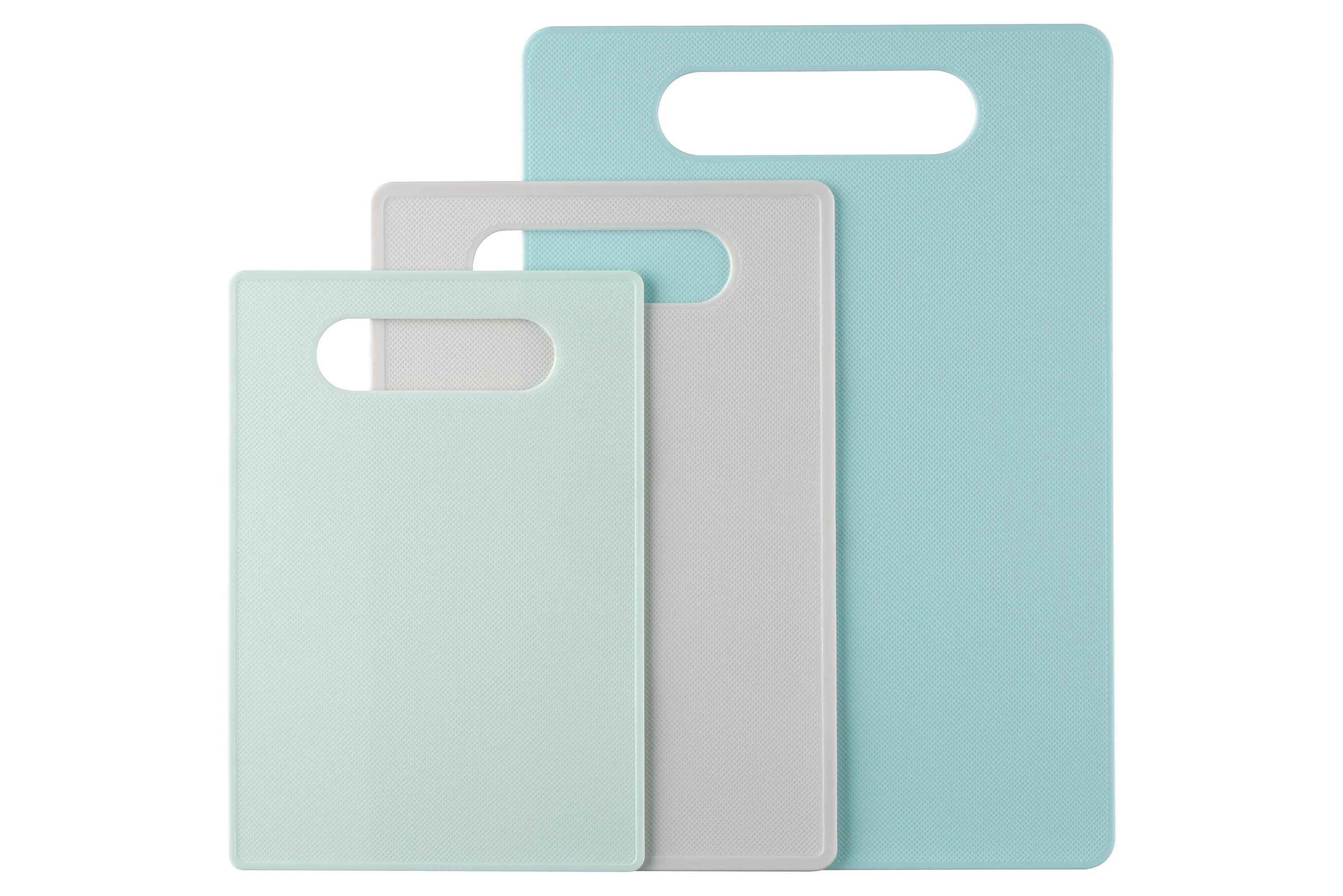 Багато дошок не буває. Під час готування необхідні дошки кількох форм, розмірів і різного призначення, зокрема для риби, м’яса, овочей тощо. У пригоді стане набір дошок ARDESTO Gemini – велика блакитного кольору (35,2 × 24,8 × 0,25 см), стандартна сірого кольору (28,8 × 19,6 × 0,22 см) та середня блакитна (25 × 17,6 × 0,22 см). Вироби мають прямокутну форму, а для зручності передбачено отвір, за нього можна повісити аксесуар на гачок. Дошки можна мити в посудомийній машині.