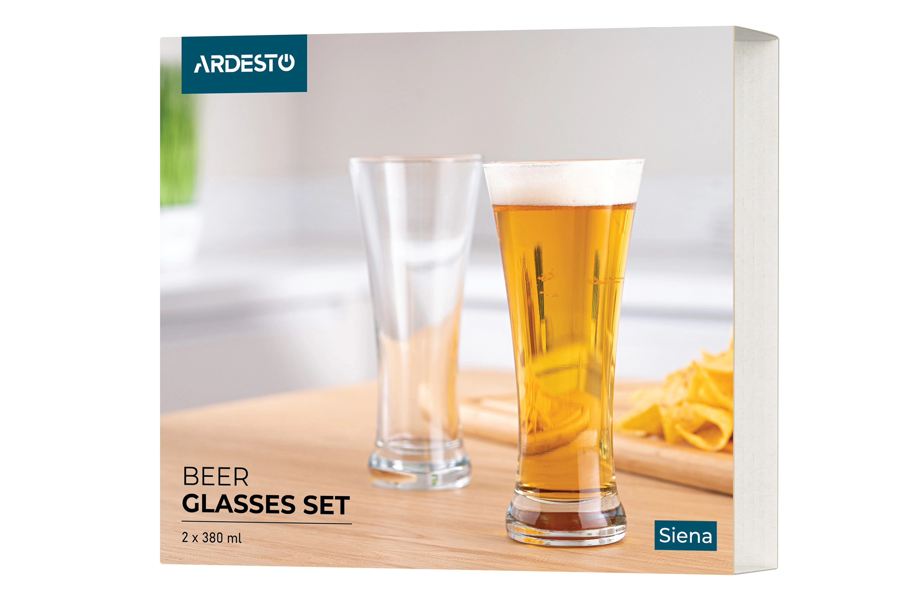 Набір келихів для пива Ardesto Siena, 380мл, 2шт, скло, прозорий