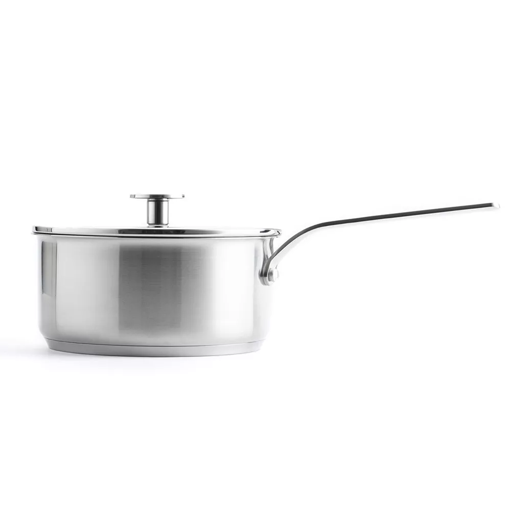 Виготовлені з високоякісної нержавіючої сталі, з бездоганним шліфованим покриттям та алюмінієвою серцевиною для рівномірного розподілу тепла. V-подібні ручки з нержавіючої сталі, що залишаються холодними, для комфортного та надійного тримання.
