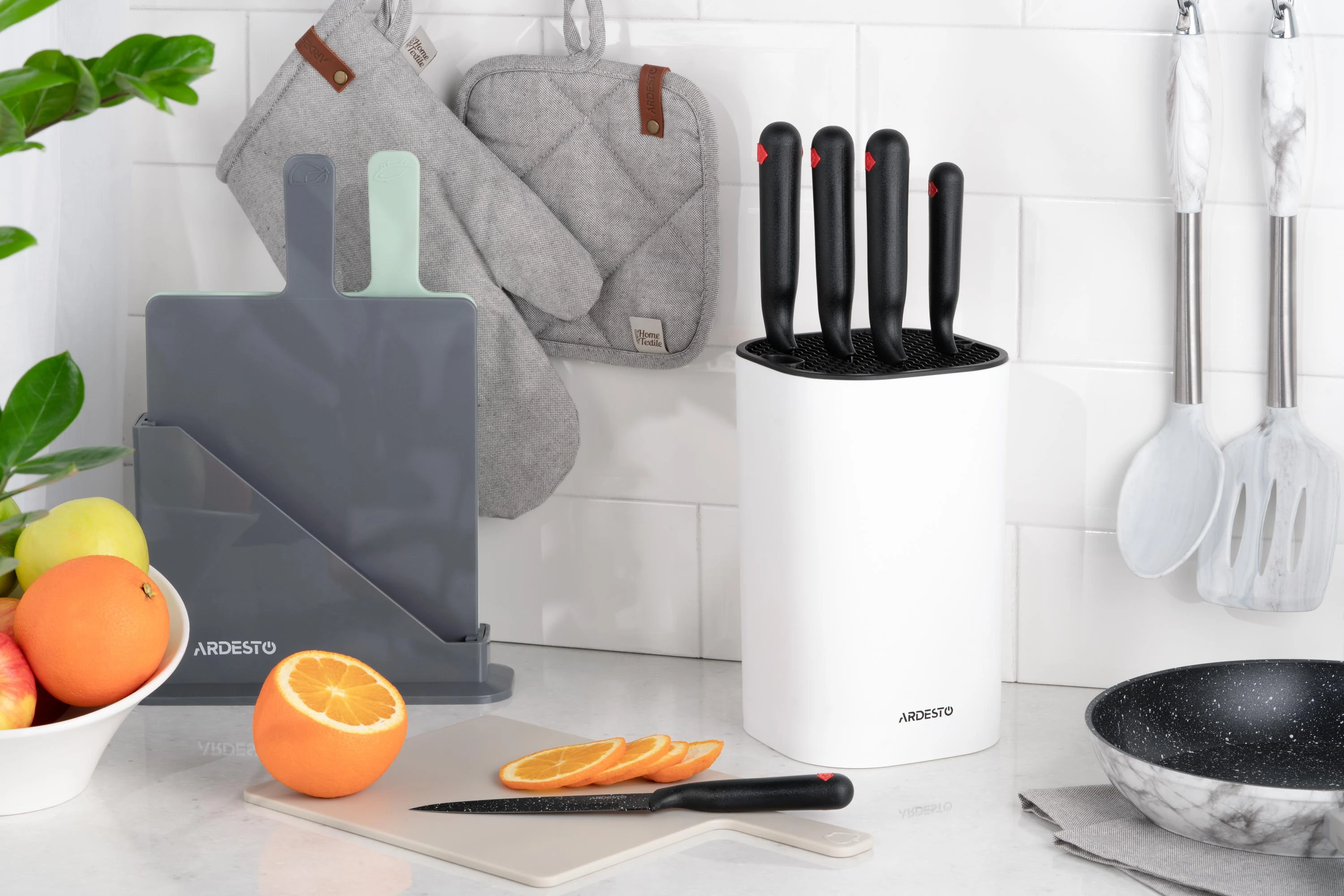 Кухня – місце, де створюють кулінарні шедеври й без якісного інструментарію тут не обійтися. Набір ножів ARDESTO Black Mars із п’яти предметів – це вдале комплексне рішення, де наявні: кухарський ніж (20,3 см), універсальний ніж (12,7 см), ніж для хліба (20,3 см), ніж слайсерний (20,3 см) і ніж для чищення овочів (8,9 см).