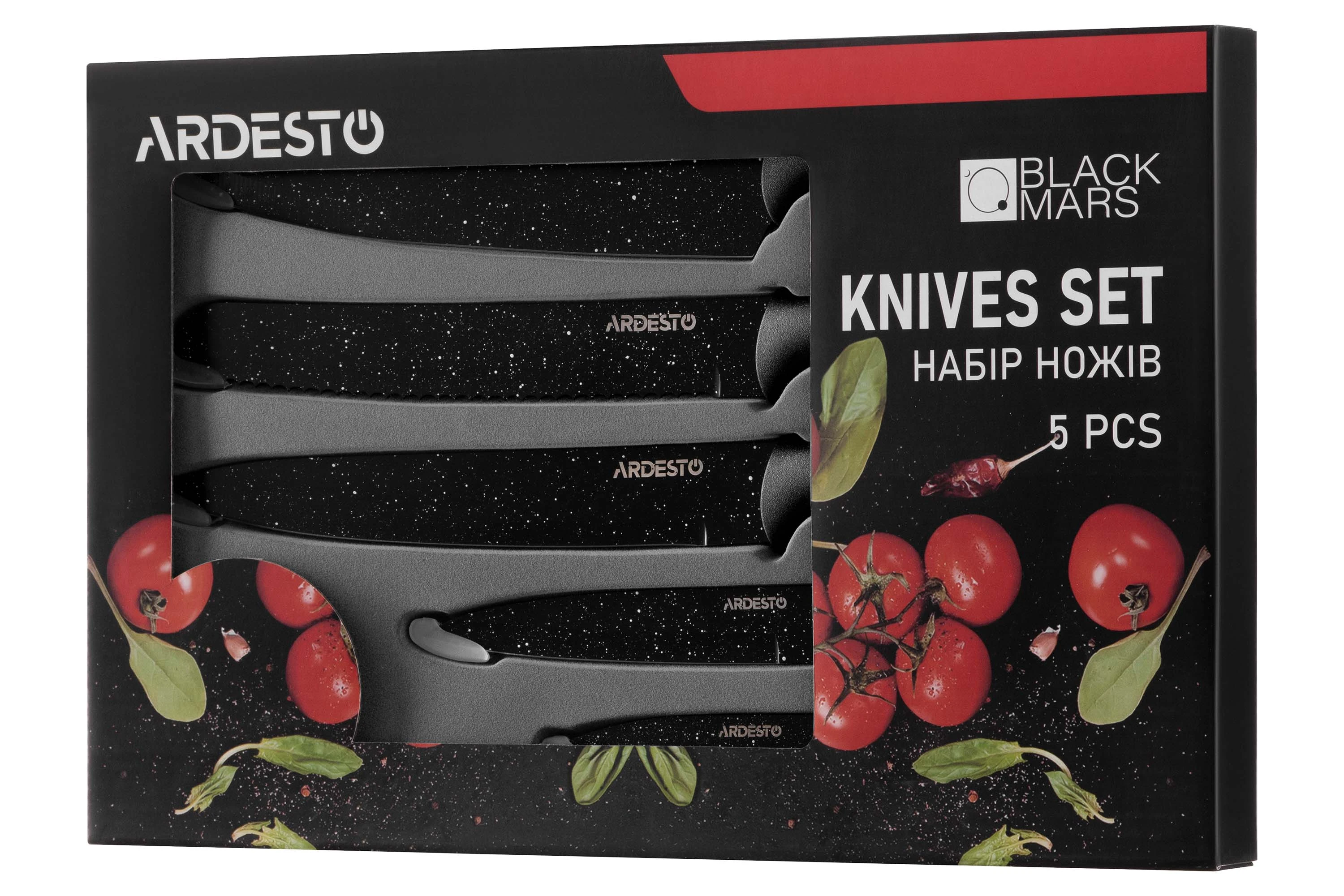 Набір ножів Ardesto Black Mars, 5 предметів, чорний, нержавіюча сталь, пластик