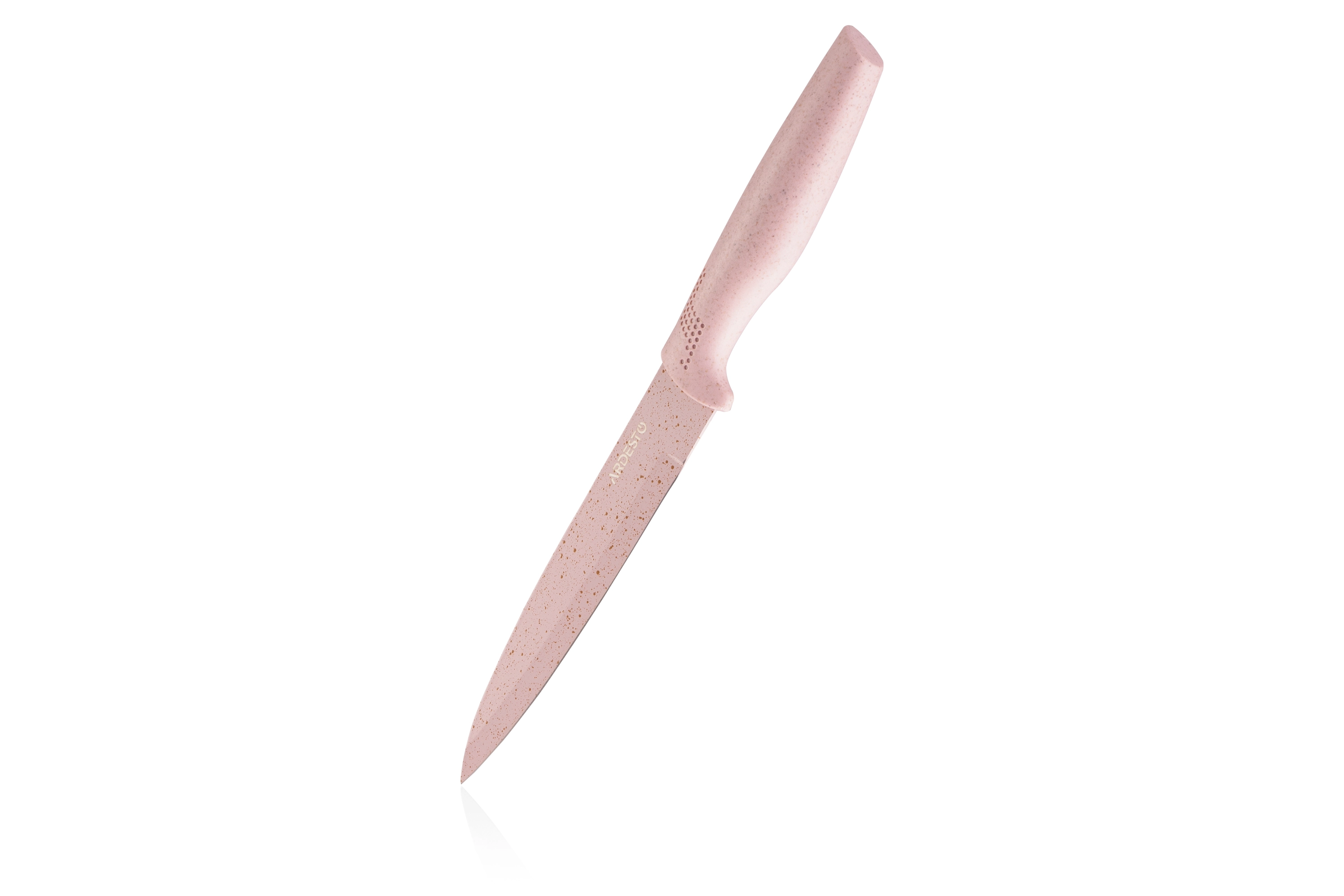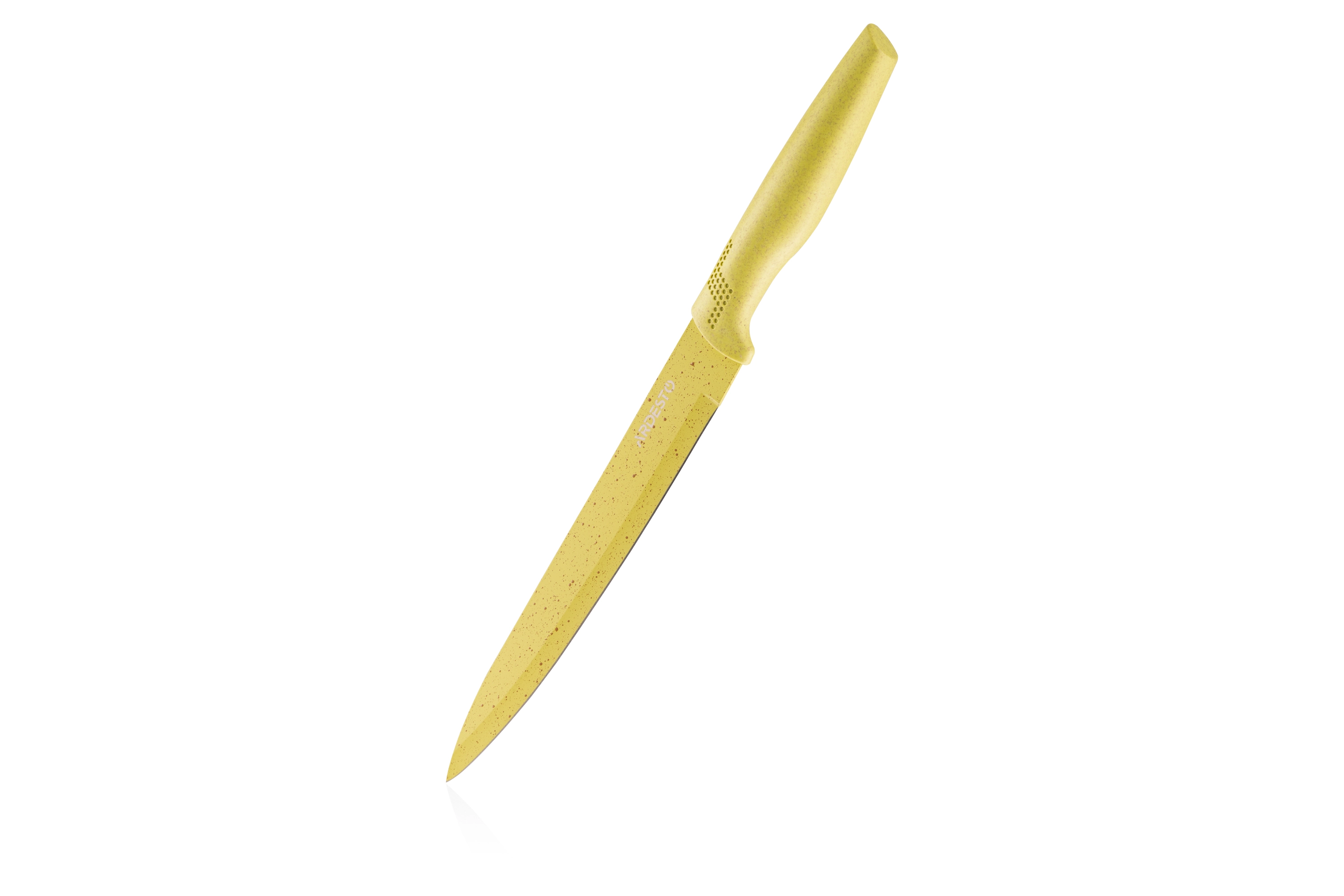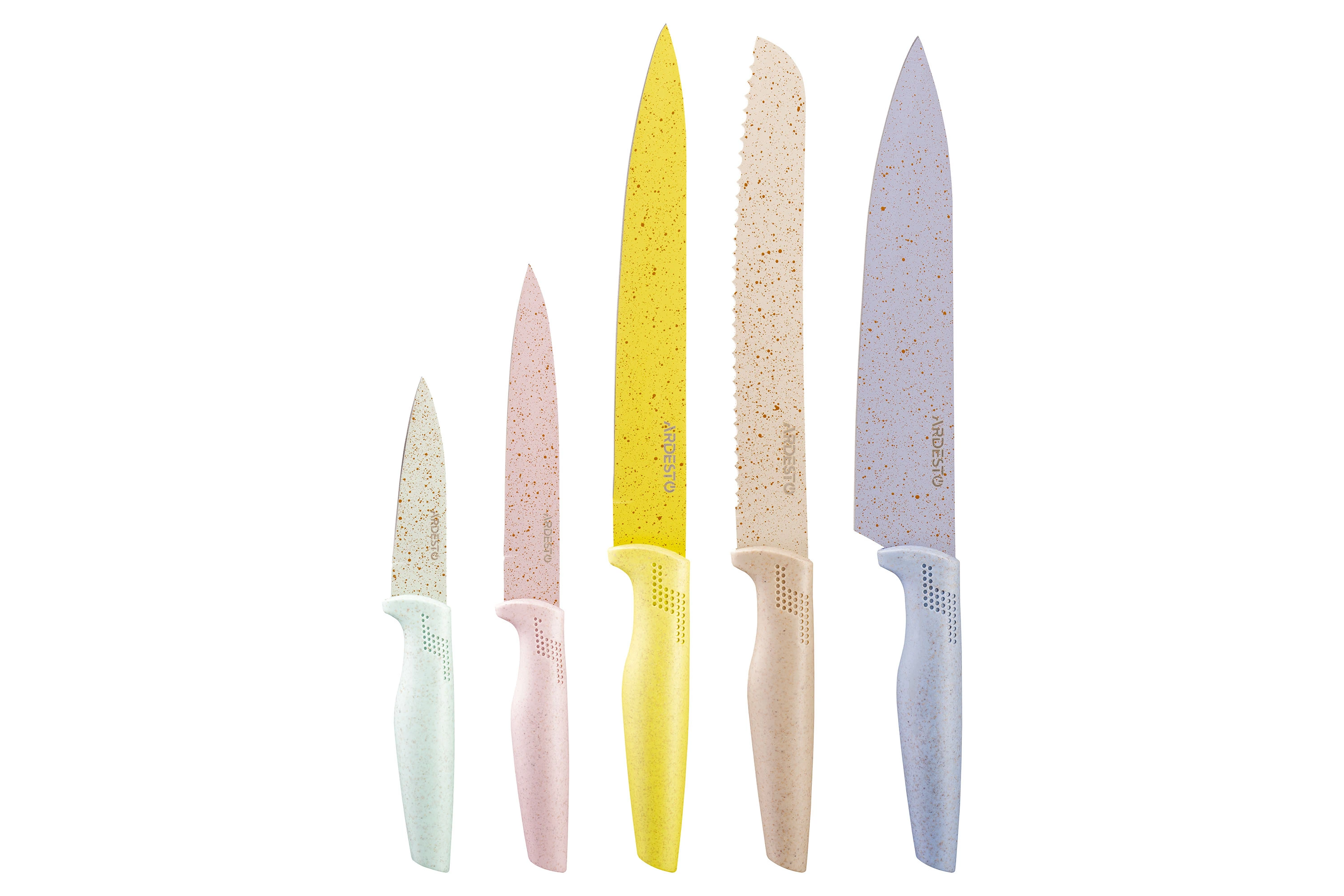 Аби приготування смачних страв дарувало задоволення, необхідно мати під рукою зручне та якісне кухонне приладдя, незмінною складовою якого є ножі. Добре, якщо їх кілька, як у наборі ARDESTO Fresh, який, крім іншого, дарує естетичне задоволення, бо містить: кухарський ніж (20,3 см) синього кольору, універсальний ніж (12,7 см) рожевого кольору, ніж для хліба (20,3 см) бежевого кольору, ніж слайсерний (20,3 см) салатового кольору та ніж для чищення овочів (8,9 см) блакитного кольору.