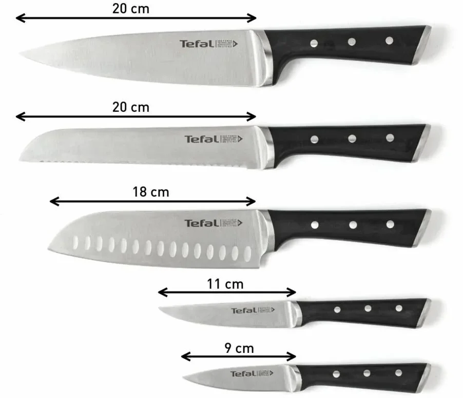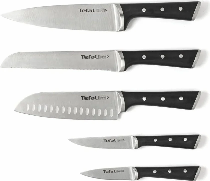 Набір з 5 ножів Tefal Ice Force, леза яких охолоджуються до -120°С для оптимальної та довготривалої ефективності різання. Від очистки продуктів, до нарізання скибочками та подрібнення. Асортимент високоефективних ножів розроблений, щоб зробити приготування їжі простим та приємним