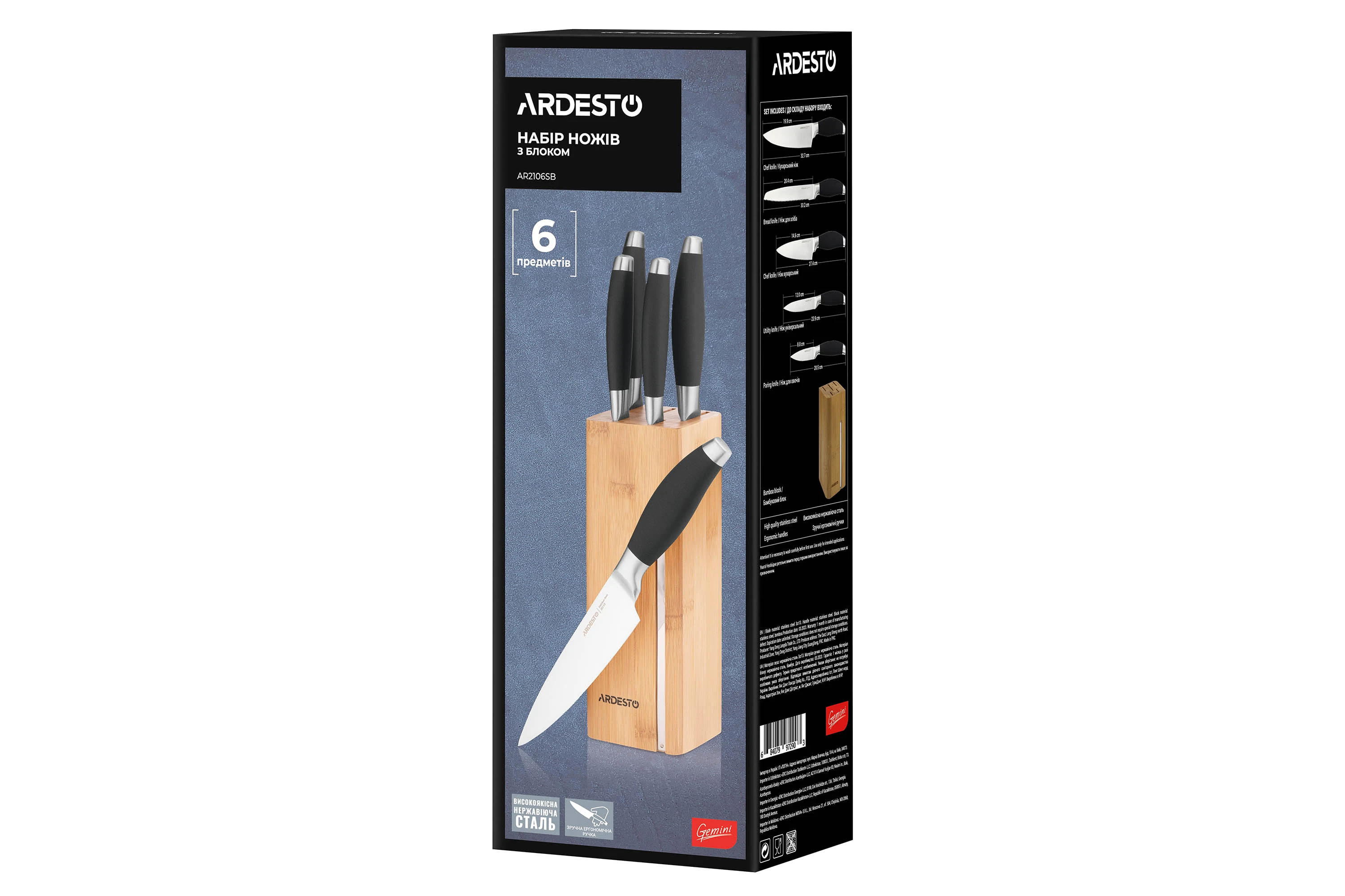 Набір ножів з блоком Ardesto Gemini, 6 предметів, нержавіюча сталь, пластик, бамбук