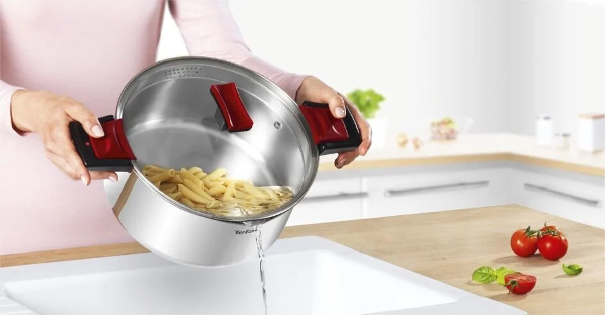 З новаторськими каструлями з набору посуду Tefal Cook & Clip приготування їжі стає простим і безпечним! Геніальна система easy-lock фіксує на місці спеціально розроблену кришку з отворами для зливу, позбавляючи вас необхідності використовувати друшляк і прихватки. Завдяки цій системі забезпечується продумане, безпечне і легке проціджування всього, від макаронів і рису до картоплі та овочів. Заощаджуйте час та сили на кухні, готуючи смачні та ароматні страви для всієї родини!