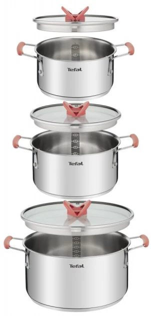 Набір посуду Tefal Opti Space, 6предметів, нержавіюча сталь, силікон, скло