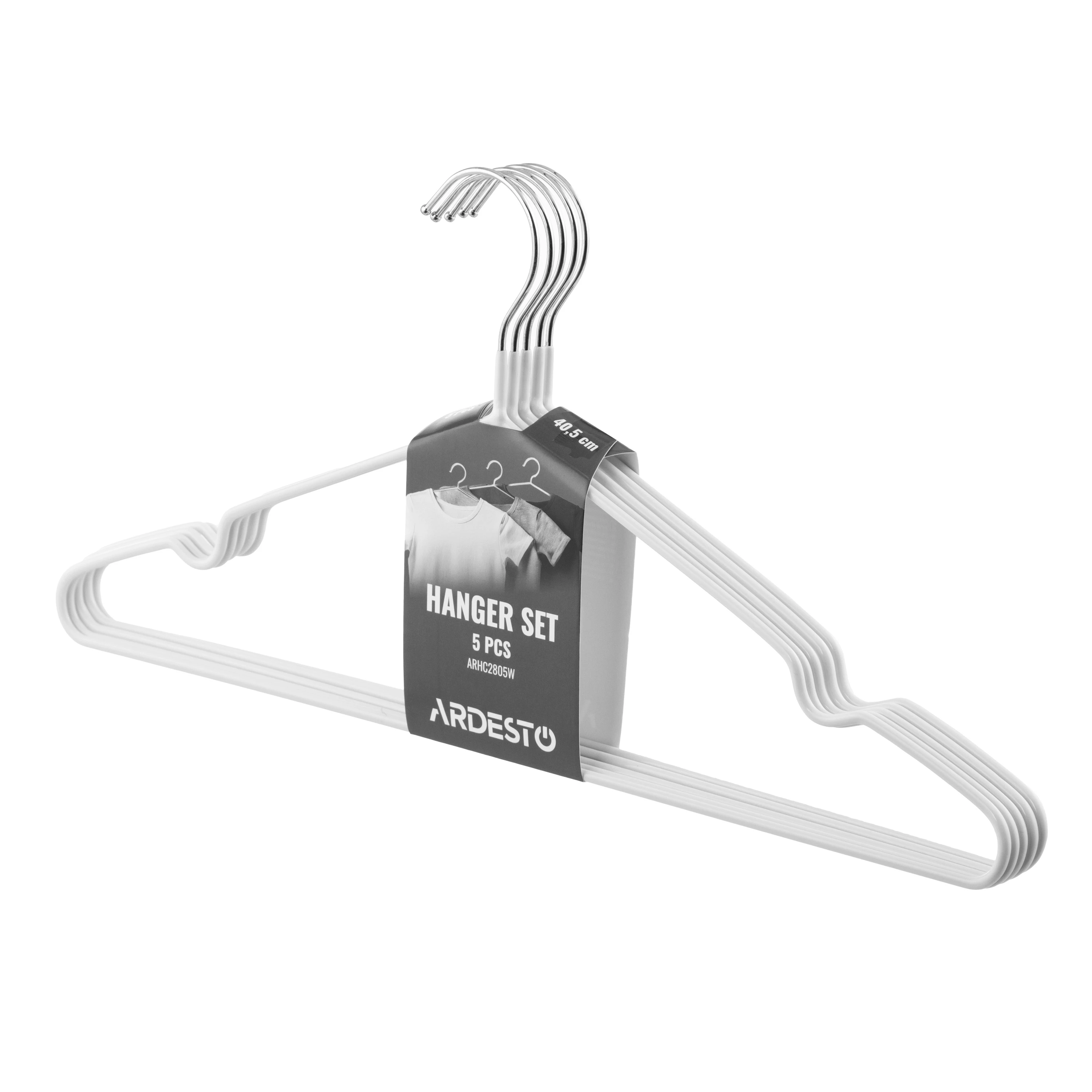 Набір вішаків Ardesto 40.5см, 5шт, метал, ПВХ, білий