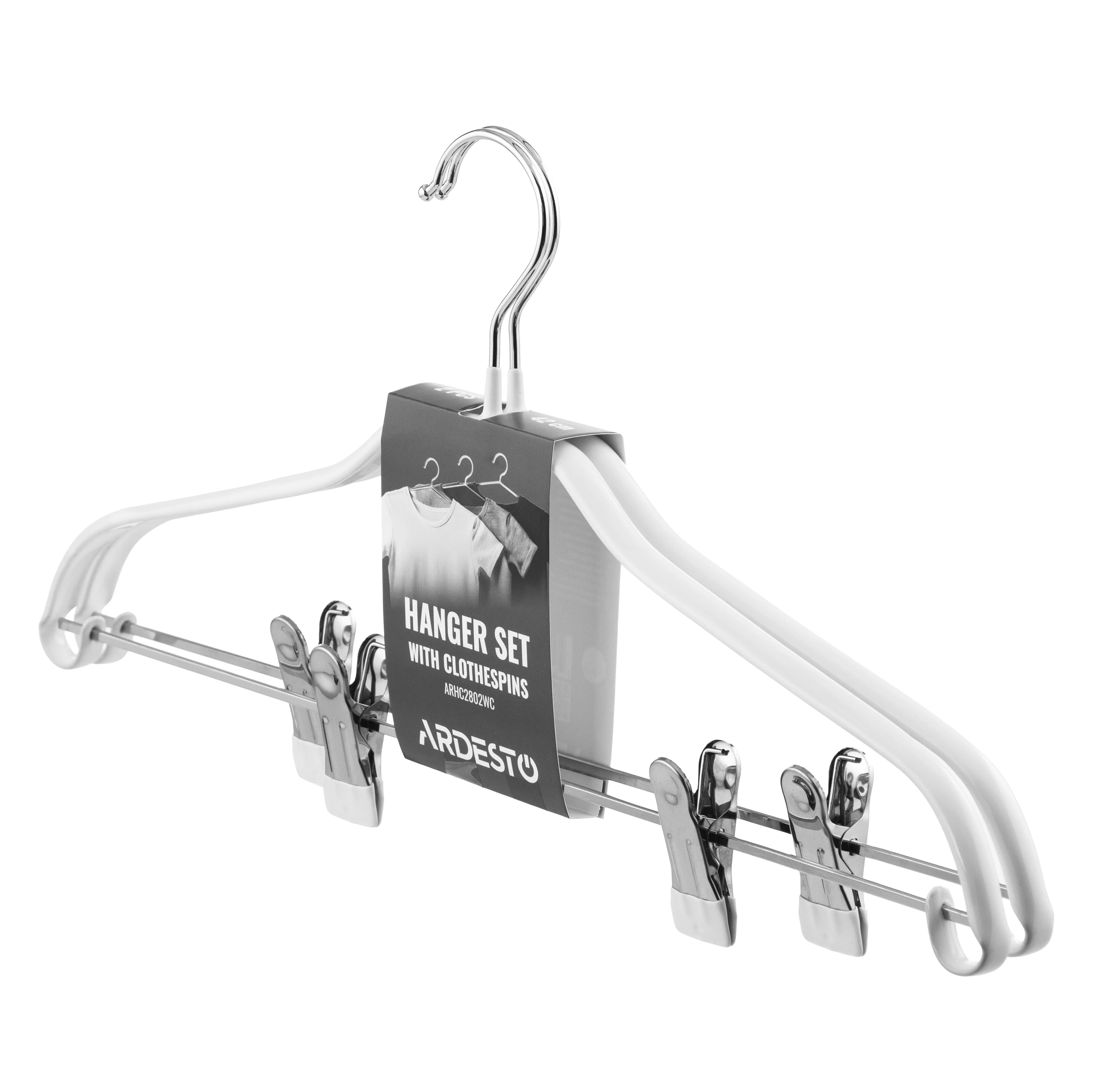 Набір вішаків з прищіпками Ardesto 42см, 2шт, метал, ПВХ, білий