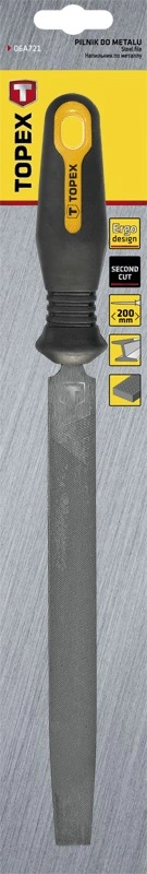 Напилки по металу TOPEX довжиною 200 мм. Призначені для шліфування металу. Виготовлений з високоякісної сталі Т12. Ергономічне руків’я, вкрите протиковзним матеріалом, забезпечує безпеку та комфорт під час експлуатації. Марка TOPEX адресована майстрам, які займаються дрібним ремонтом.
