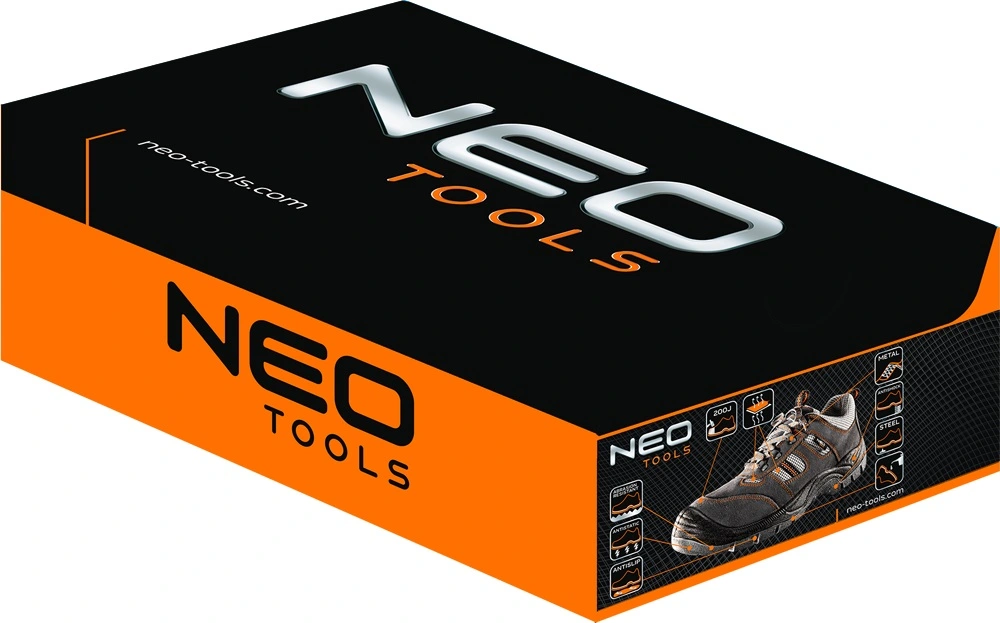 Черевики замшевi NEO TOOLS - це основний захист під час роботи. Вставки з "дихаючого" матеріалу забезпечують хорошу вентиляцію. Антиковзаюча підошва з ударостiйкої системи забезпечує безпеку і комфорт. Металева антипрокольна прокладка, а також посилений металевий піднесень захищають від механічних пошкоджень. Завдяки м'якій внутрішній обробці комфорт роботи зберігається на високому рівні. СЕ-маркування - це гарантія безпеки, що підтверджує, що виріб відповідає всім вимогам європейських директив. Бренд NEO виправдовує очікування професіоналів.
