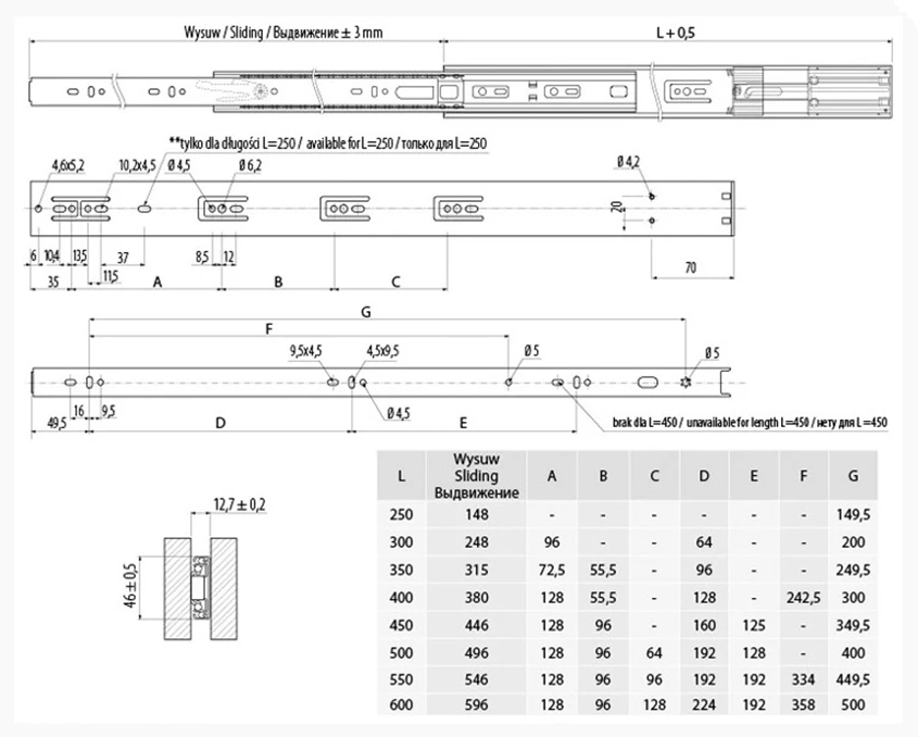 GTV Versalite Plus L=250 мм рекомендовано для невеликих шухляд у кухонних, письмових столах, тумбах, комодах та офісних шафах. Оптимальне рішення для функціонального інтер’єру з гарантованою надійністю.
