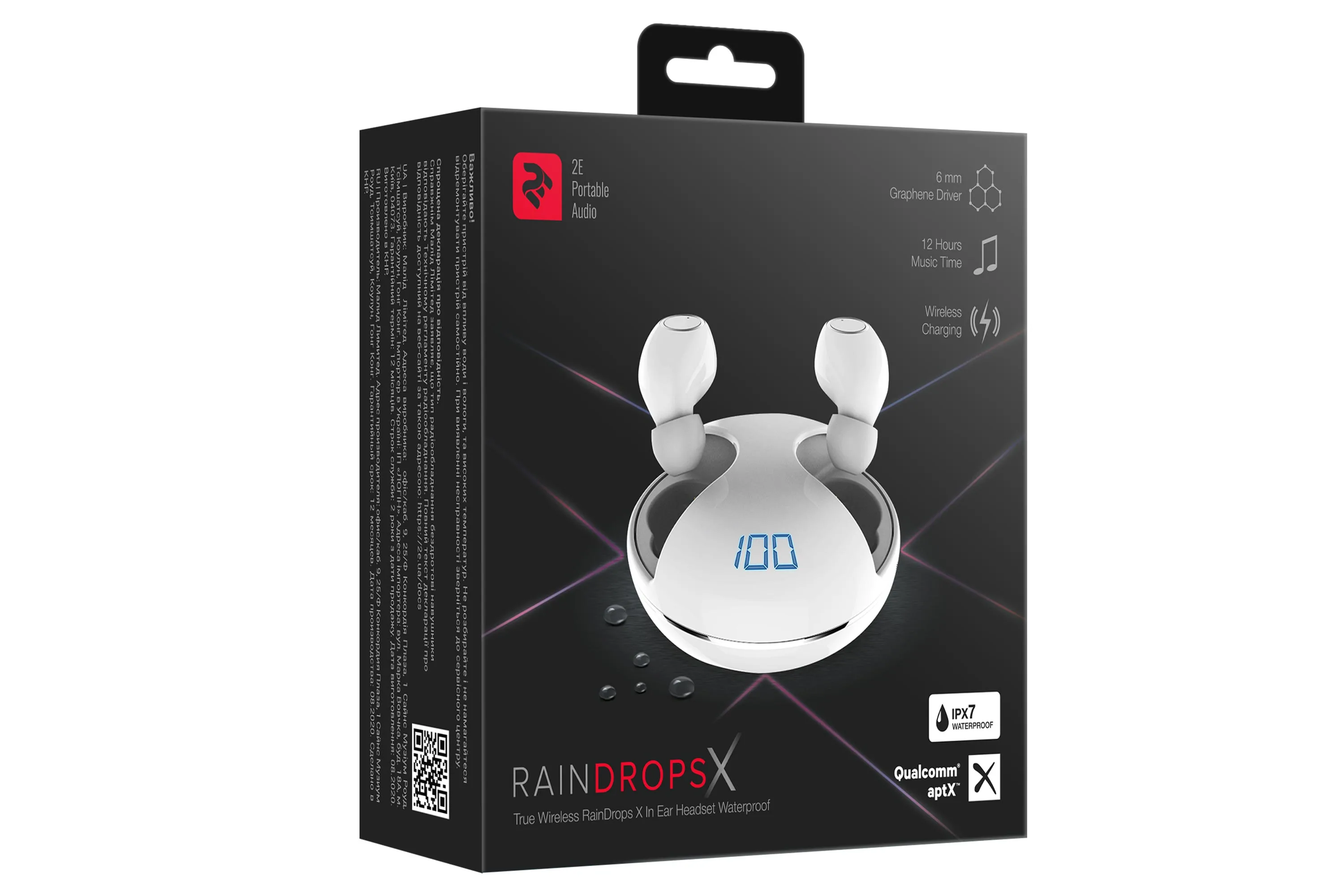 2 Е RainDrops Х True Wireless - оновлена інноваційна модель моделі 2E RainDrops, що вже зарекомендувала себе! Тепер ще автономніше! -збільшена ємність батарей навушників і кейса дозволяють до 12 годин програвання на одному заряді акумулятора навушників і до 70 годин з зарядом від кейса!