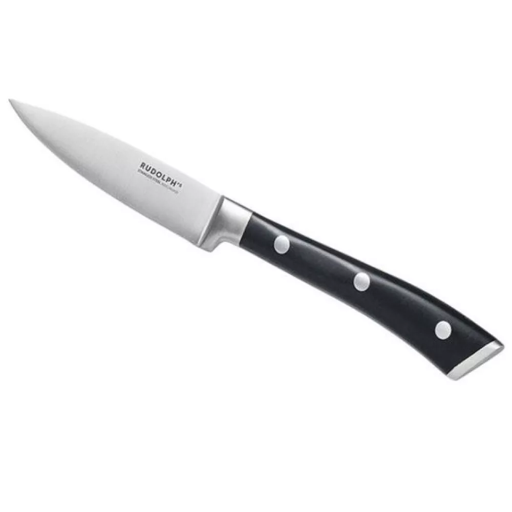Ніж Bergner MasterPro Foodies collection виготовлений з нержавіючої сталі з вмістом хрому та вуглецю. Лезо стійке до корозії, легко заточується, при цьому надовго зберігаючи ідеальну гостроту. Ергономічна бакелітова ручка зручної форми на металевих заклепках. Вигнута ручка з упором під пальці перешкоджає ковзанню руки під час роботи з жирними продуктами. Серія кухонних ножів Bergner Master Pro Stuttgart легко впорається з будь-яким завданням.