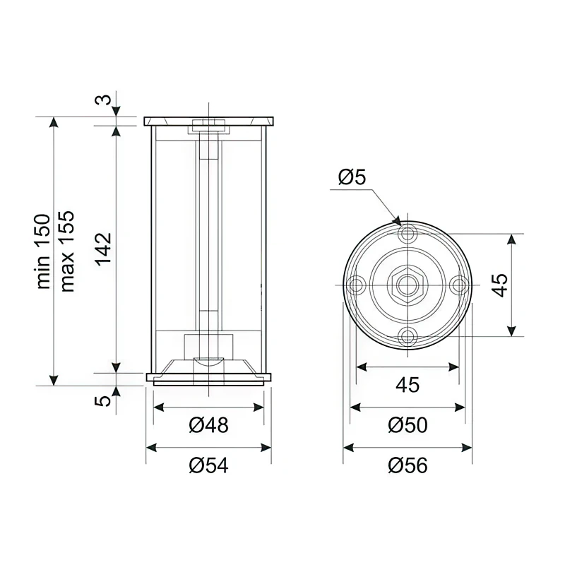 Ніжка меблева регульована DC DA10AL H-150мм Алюміній