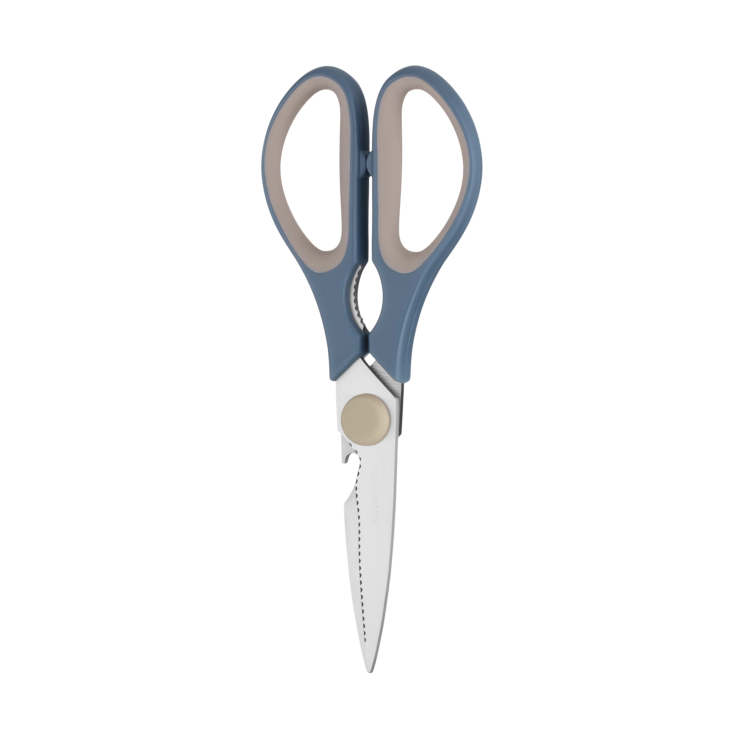У кухонних ножицях ARDESTO Gemini поєднано функціональність і стильний дизайн. Інструмент виготовлено з нержавіючої сталі та пластику, зумовлюючи довговічність і зручність під час використання. Ножиці виготовлено в сіро-блакитному кольорі. Завдяки розміру (21 × 8,3 × 1 см) згодяться для щоденного використання. Інструмент можна мити в посудомийній машині, що полегшує догляд.