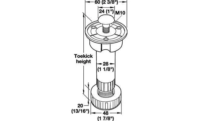 Ніжка для регулювання цоколя. Матеріал: пластик. Висота: 150 мм.