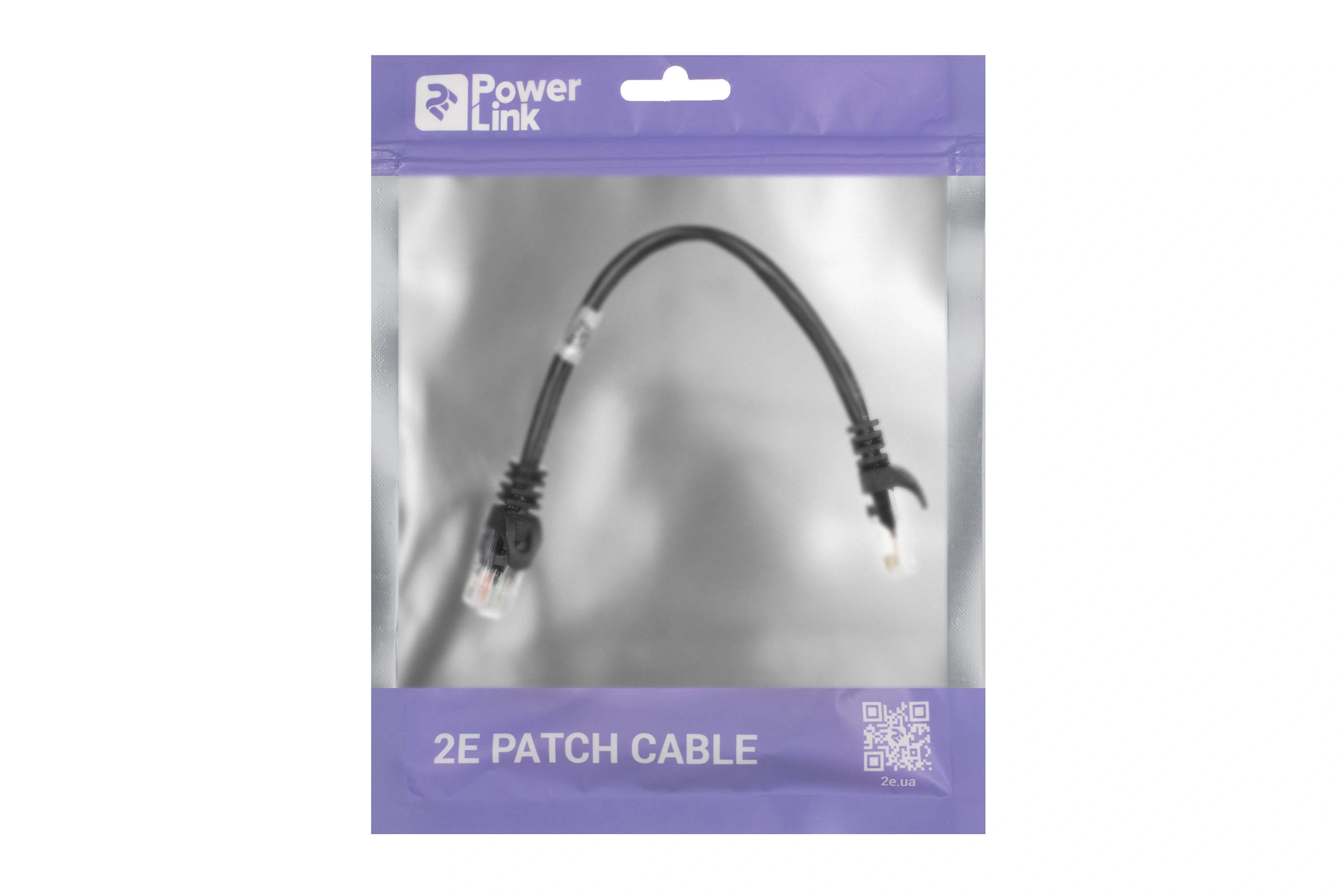 Патч-корд 2E САТ 5e, UTP, 0.20м, 26AWG, RJ45, 7/0.16, CCA, PVC, чорний