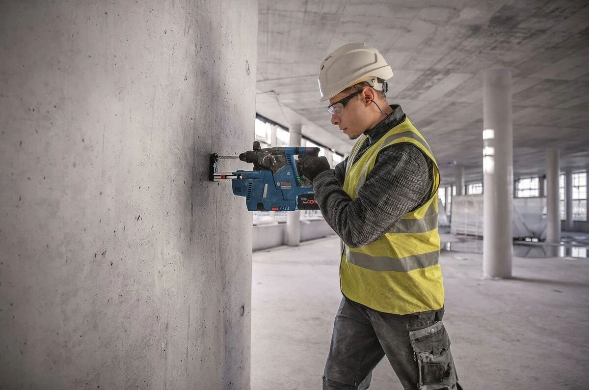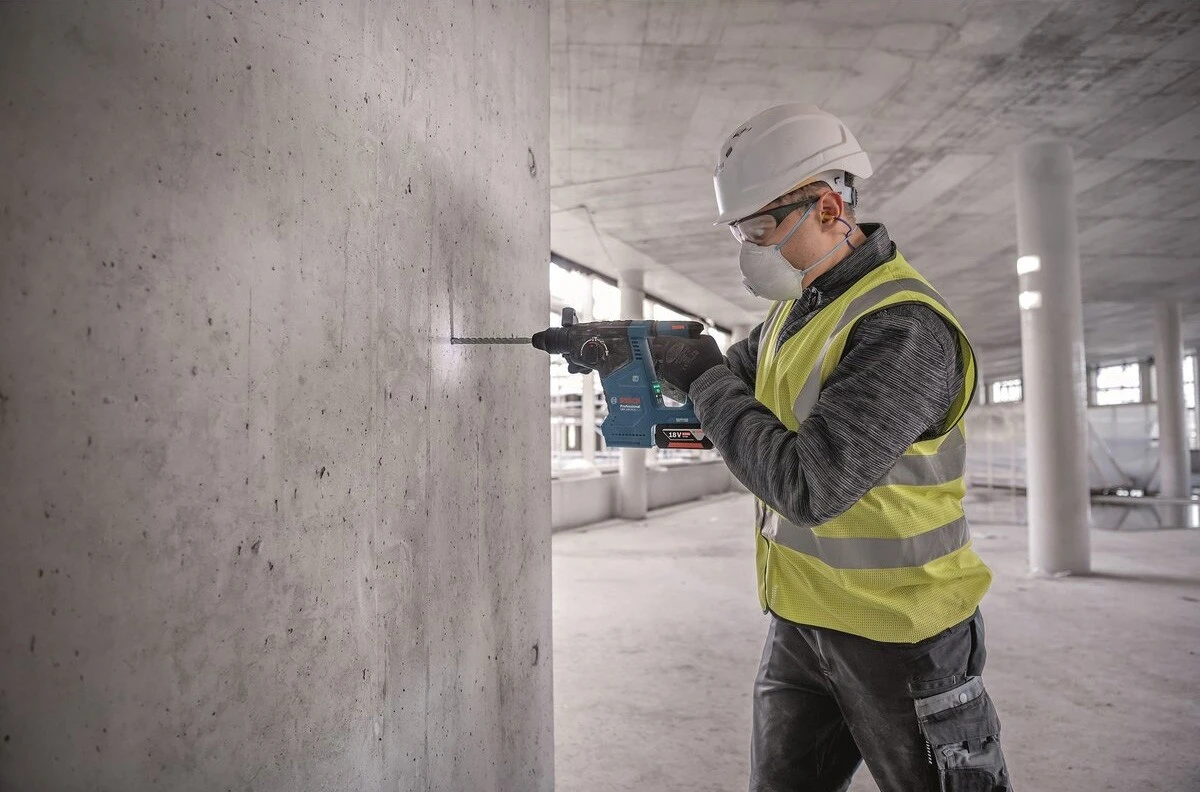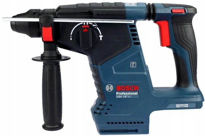 GBH 187-LI Professional - чемпіон з ефективності, коли мова йде про швидкість свердління та кількість отворів на одному заряді акумулятора завдяки безщітковому двигуну та оптимізованому механізму. Функція постійної швидкості постійно підтримує швидкість свердління. Акумуляторний перфоратор зручніше тримати в руці завдяки L-подібній формі. Він пропонує такі функції, як контроль вібрації та контроль віддачі, для роботи з відмінним співвідношенням ціни та якості. Легко читабельний дисплей відображає рівень заряду акумулятора.