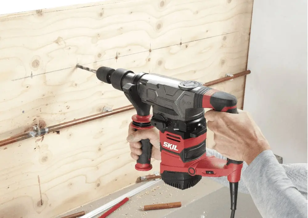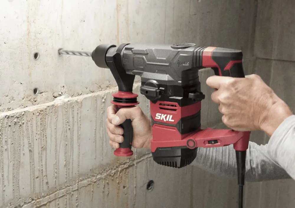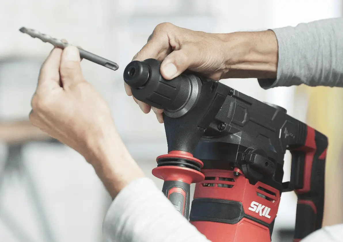 Пневматичний L-подібний перфоратор з трьома функціями. Пневматичний трифункціональний перфоратор SKIL 1781 має дуже потужний двигун на 1500 Вт і попереднє встановлення швидкості для оптимального керування. Він має ударну функцію для свердління в бетоні, функцію зупинки довбання для звичайного свердління і функцію блокування обертання для виконання робіт з довбання.