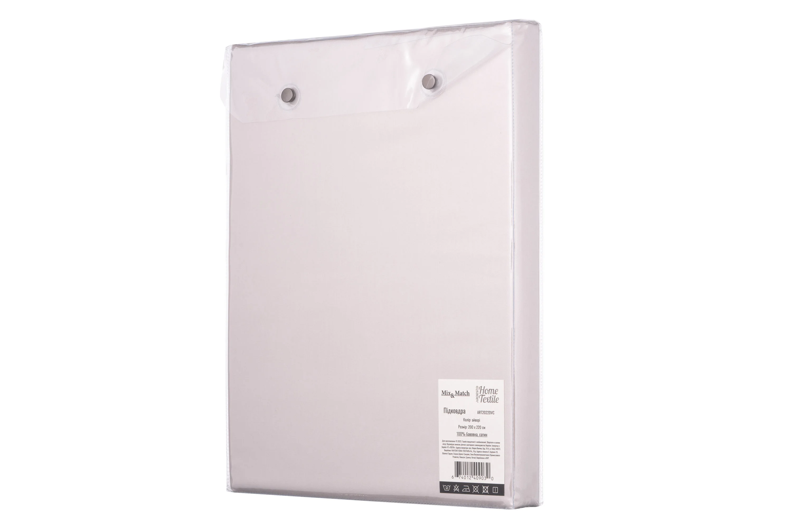 Виконана в кольорі слонової кістки, підковдра ARDESTO Mix&Match допоможе забезпечити гігієнічність і комфорт під час сну. Розмір виробу становить 200 × 220 см. Для пошиття використано якісний щільний (205 ТС) матеріал – 100 % бавовна, сатин. Застібається на блискавку, тому заправлена ковдра не вислизатиме.
