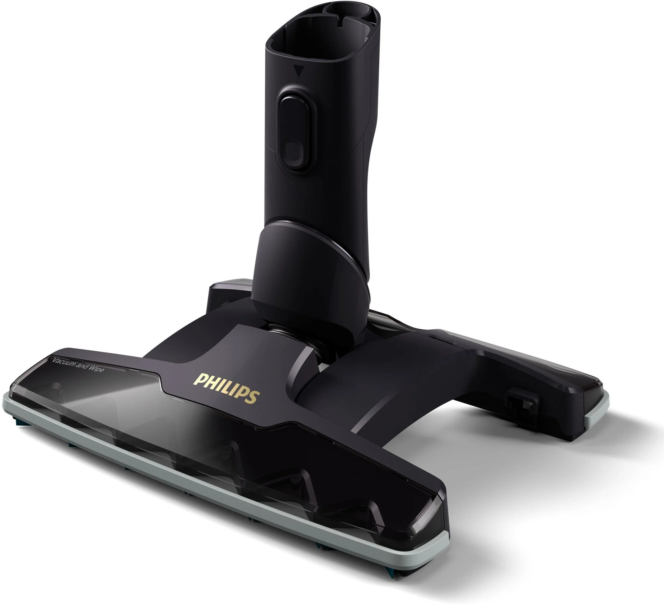 Мийний бездротовий пилосос Philips Aqua Plus має інноваційну мийну насадку для чищення за один прохід різного типу бруду – від пилу до липких плям – у будь-якому напрямку. А також він має насадку для сухого прибирання і функцію ручного пилососа для максимальної універсальності.