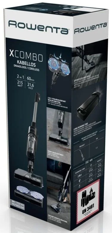 Пилосос Rowenta безпровідний X-Combo, 215Вт, вологе прибирання, контейнер -0,55л, автономія до 6