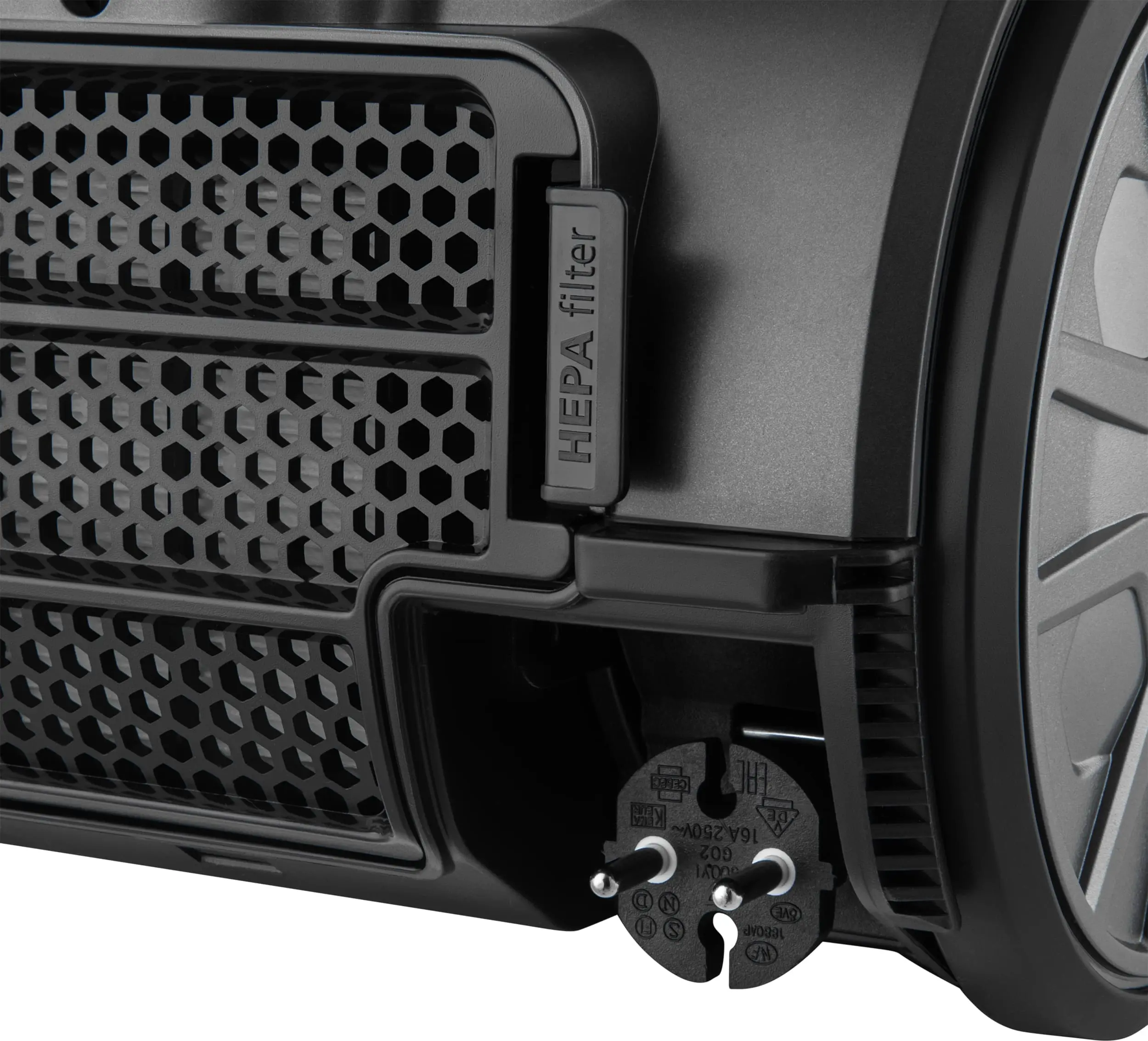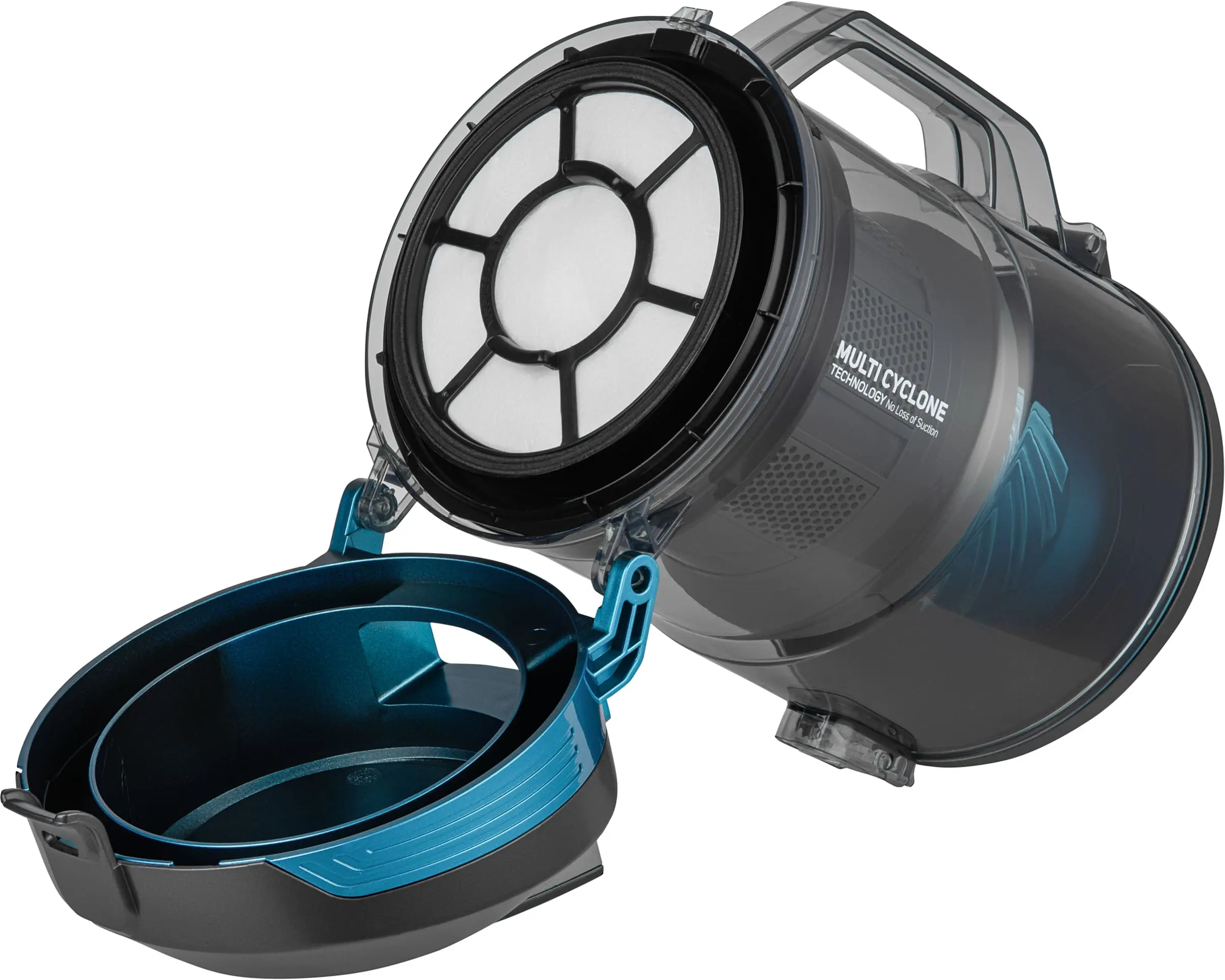 Контейнерний пилосос потужністю 700 Вт - ефективний засіб для прибирання з інноваційною технологією фільтрації НЕРА. Об'єм контейнера для пилу складає 3,5 літра, що забезпечує тривалий період роботи без необхідності частого очищення. Чорно-синій дизайн надає йому стильний вигляд, а висока потужність робить його надійним союзником у боротьбі з пилом у будь-якому приміщенні.