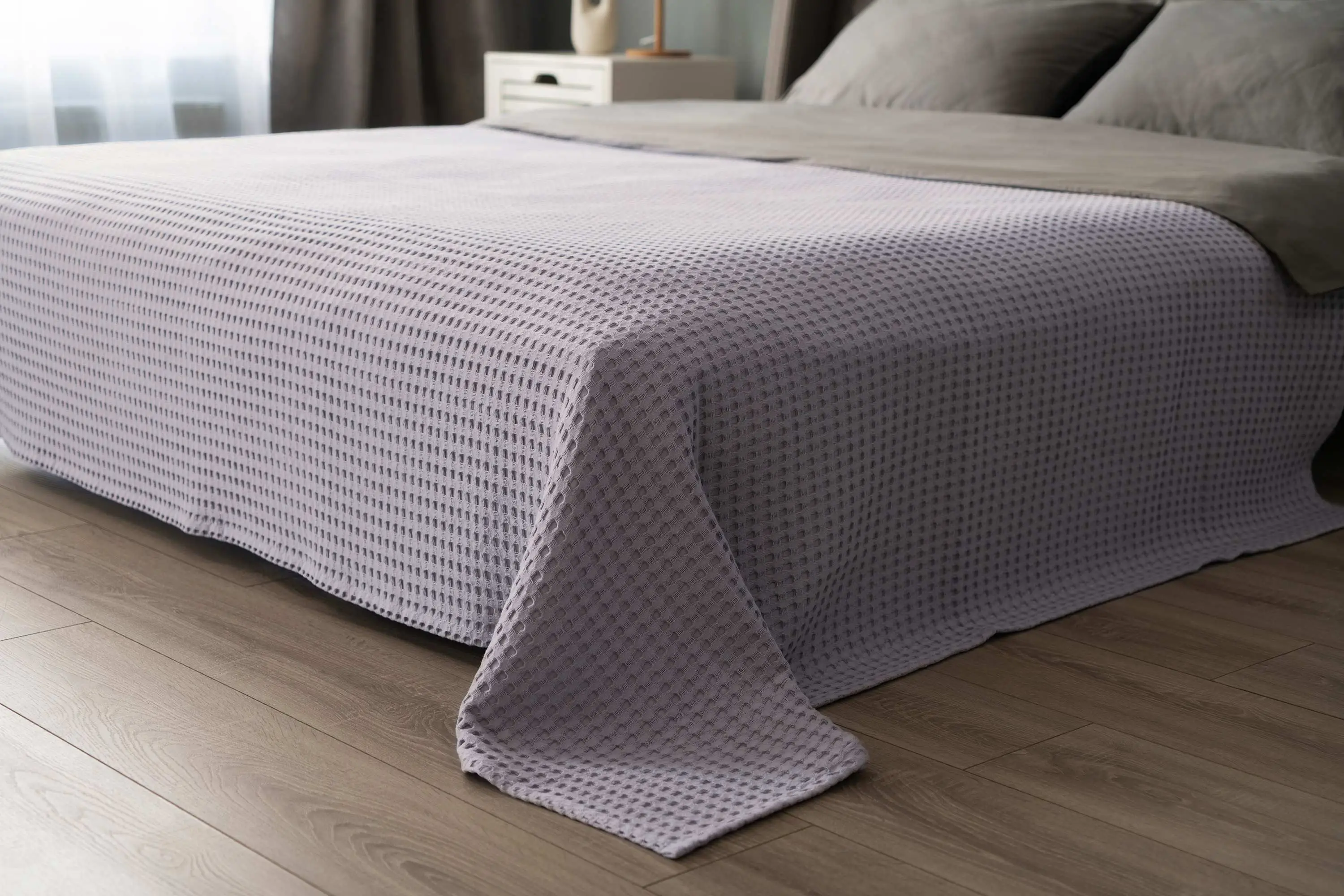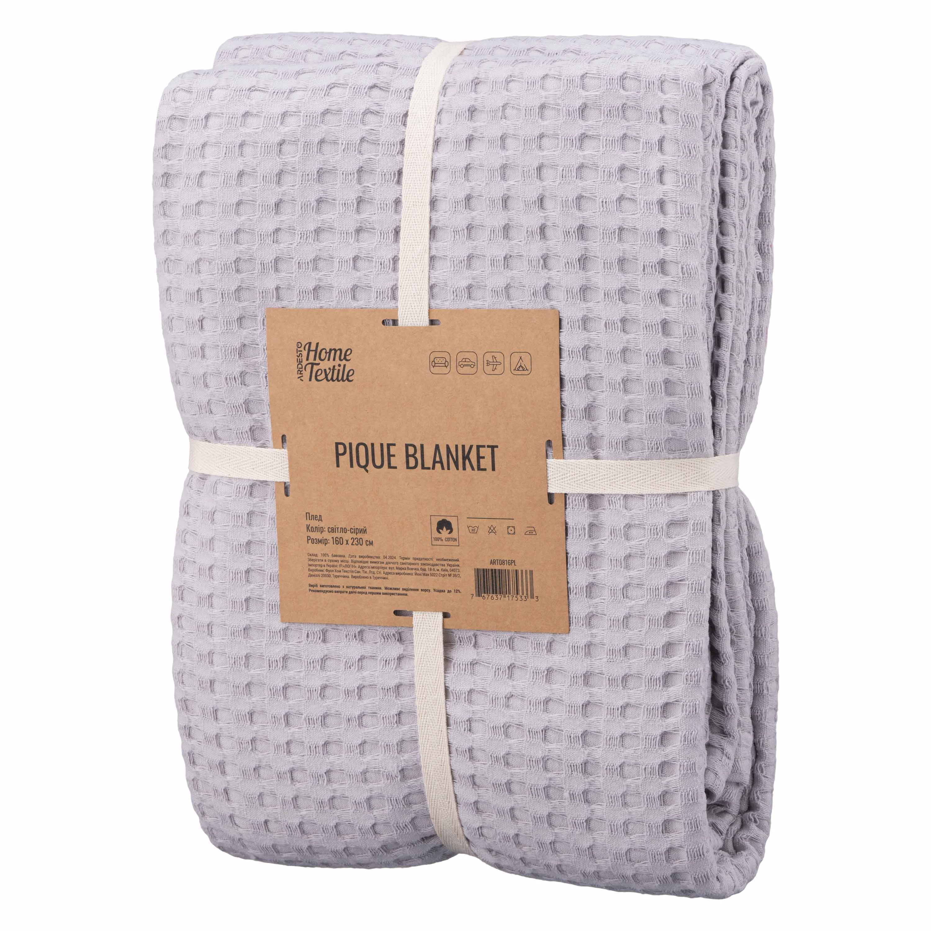 Плед Ardesto Pique 160х230см, 100% бавовна, сірий світлий
