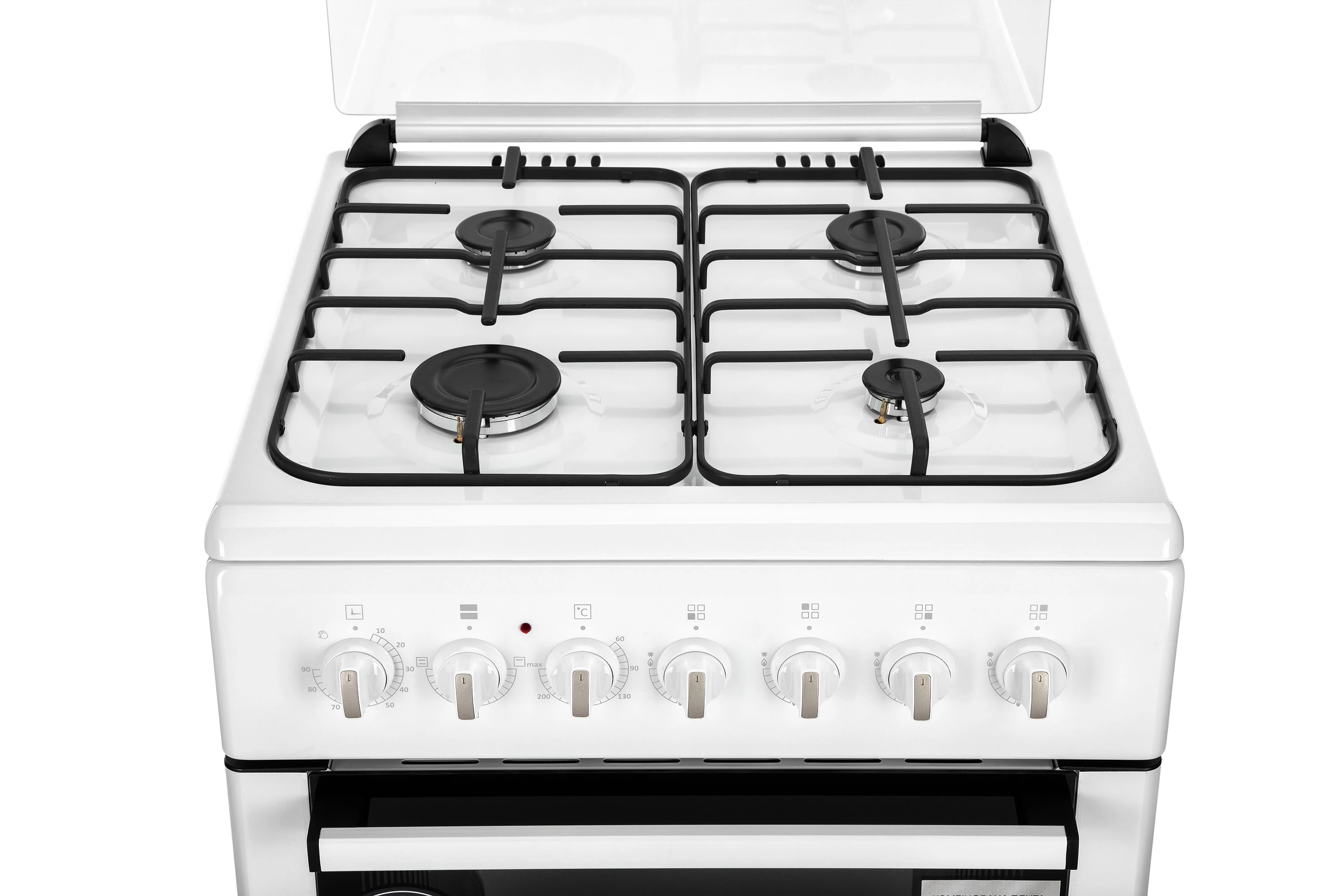 Комбінована плита білого кольору ARDESTO FSC-F6060AW на чотири конфорки з кришкою зі скла. Додатково в комплекті форсунки для скрапленого газу LPG. Передбачено автоматичне запалювання, в ручці. Робоча поверхня та решітки емальовані. Клас захисту I. Безпека користувачів – функція газ-контроль. Духова шафа об’ємом 64 л з Cool Door – знімним жаростійким склом, та підсвічуванням. Клас енергоефективності камери духової шафи А. Містке висувне відділення для зберігання. Наявність механічного таймера. Розмір (в × ш × г) 85 × 60 × 60 см. Вага 39 кг. Комбінована ARDESTO FSC-F6060AW білого кольору – це функціонально, надійно, ефективно та безпечно.