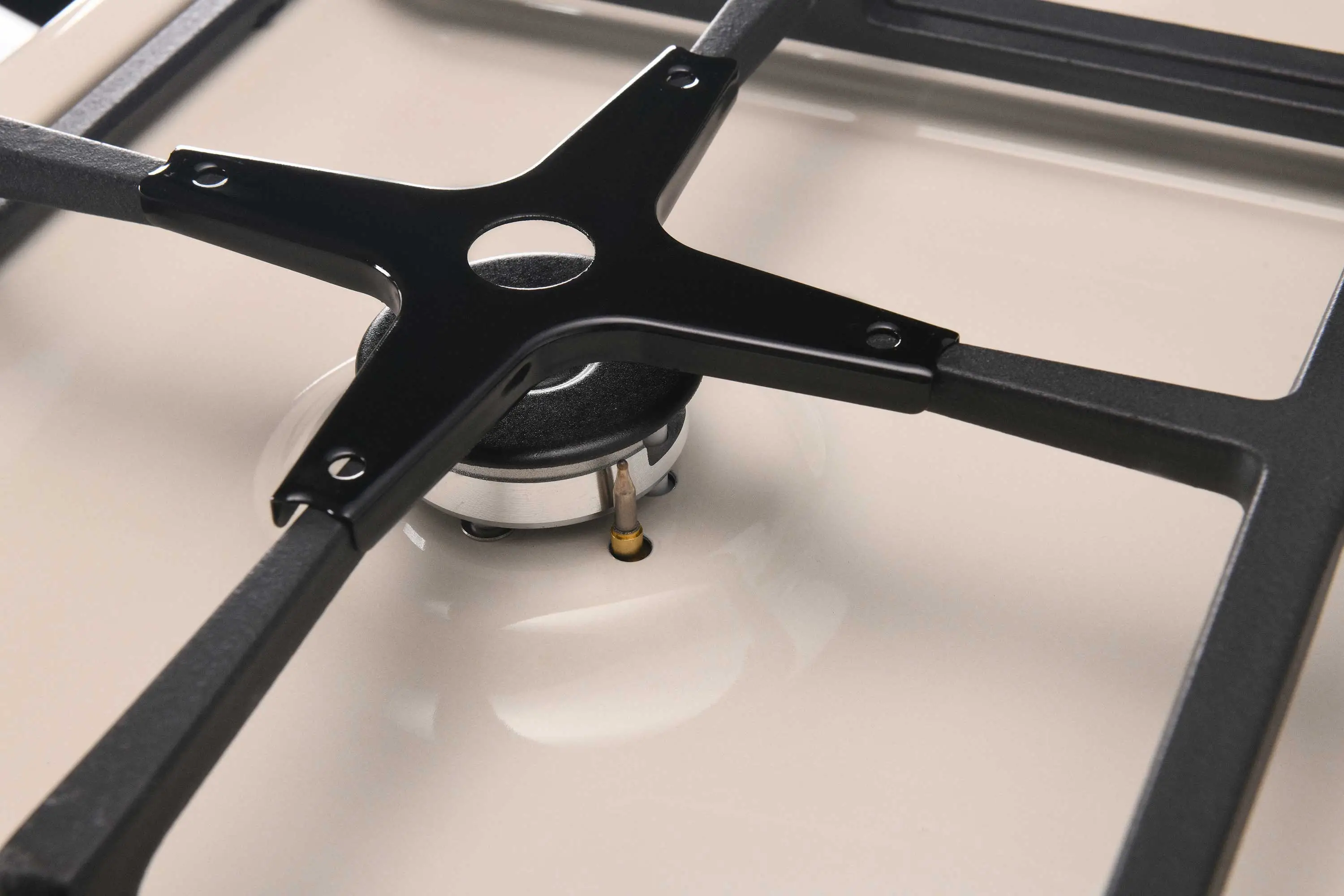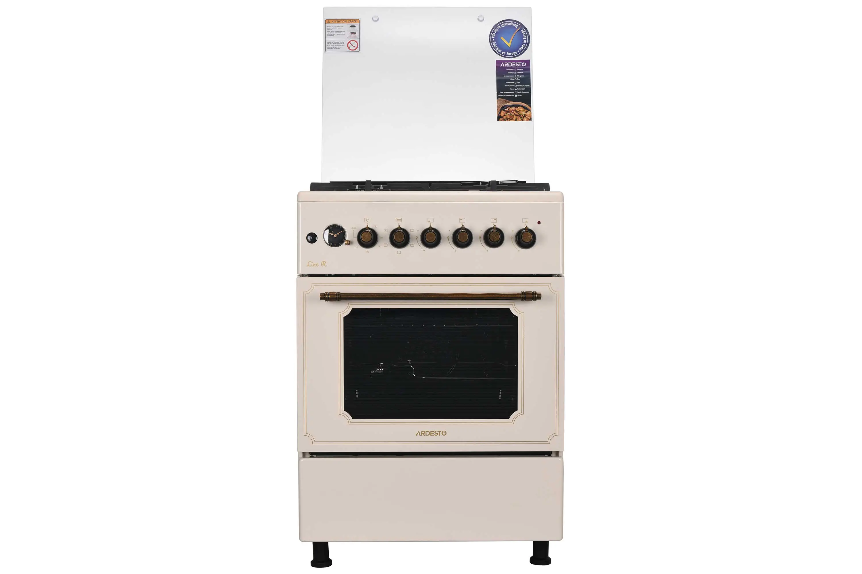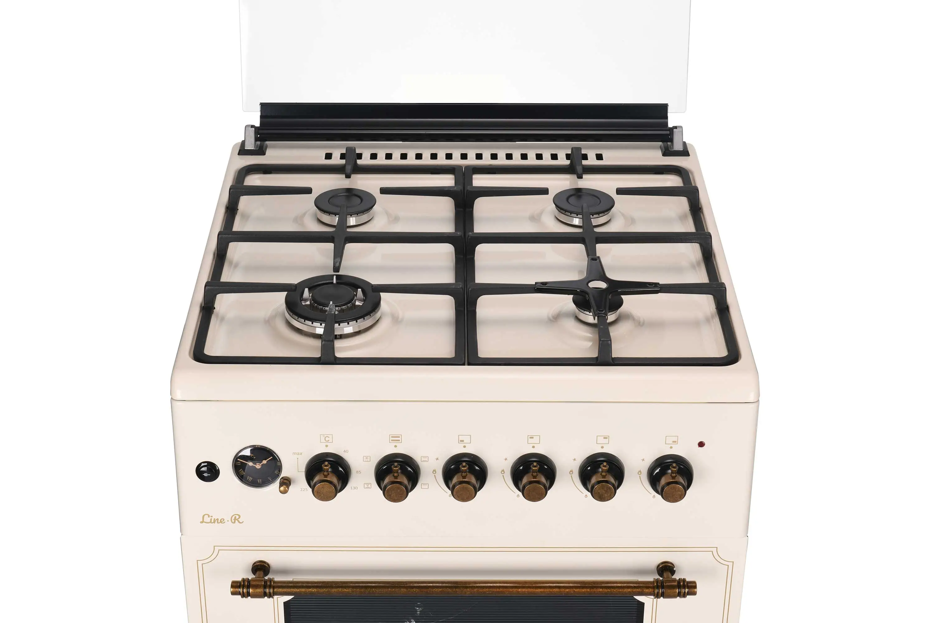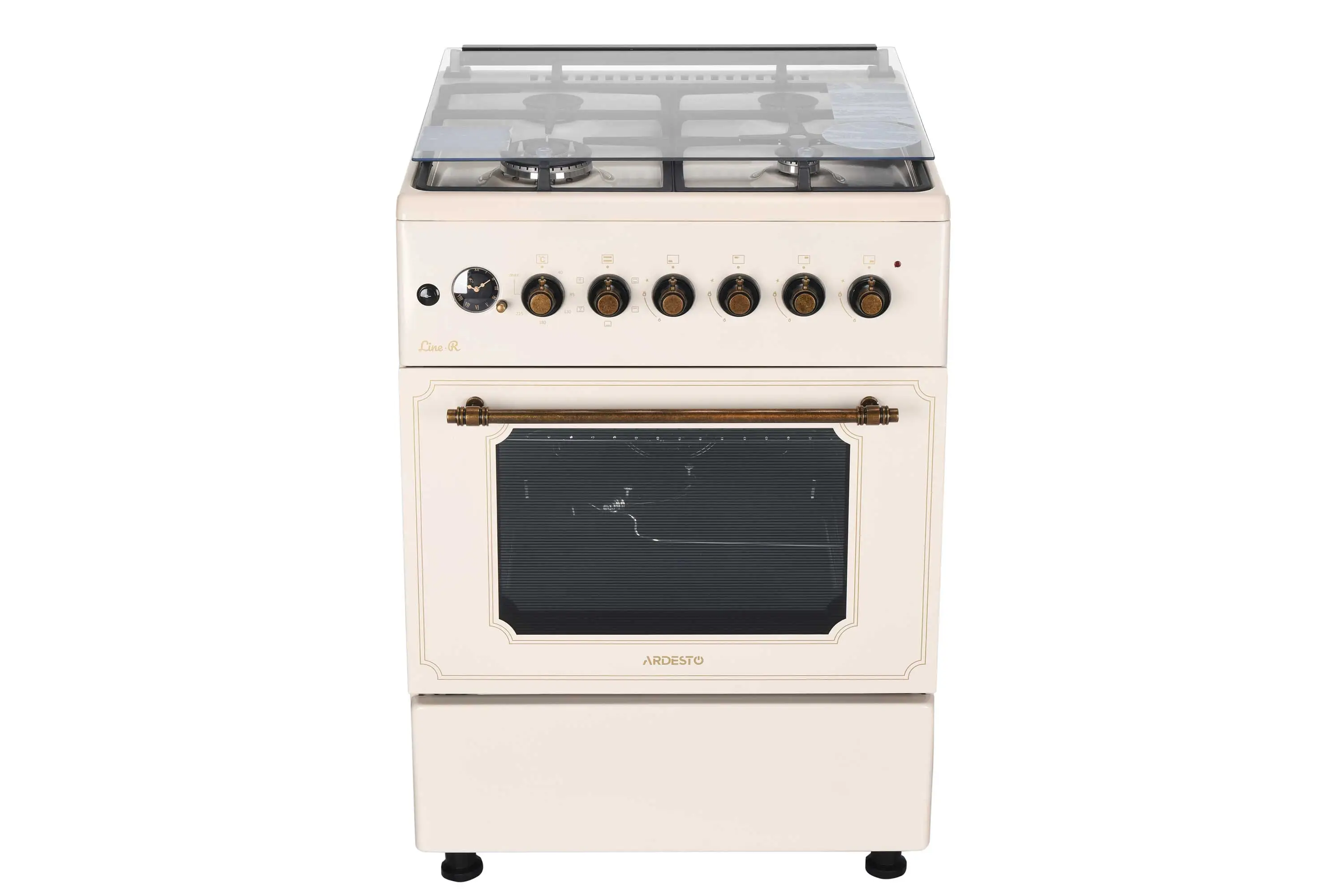 Комбінована плита ARDESTO Line-R FSCF-C606BG в корпусі бежевого кольору. Варильна поверхня оснащена чотирма газовими конфорками (пальниками). Змінні форсунки для скрапленого газу (LPG) в комплекті.