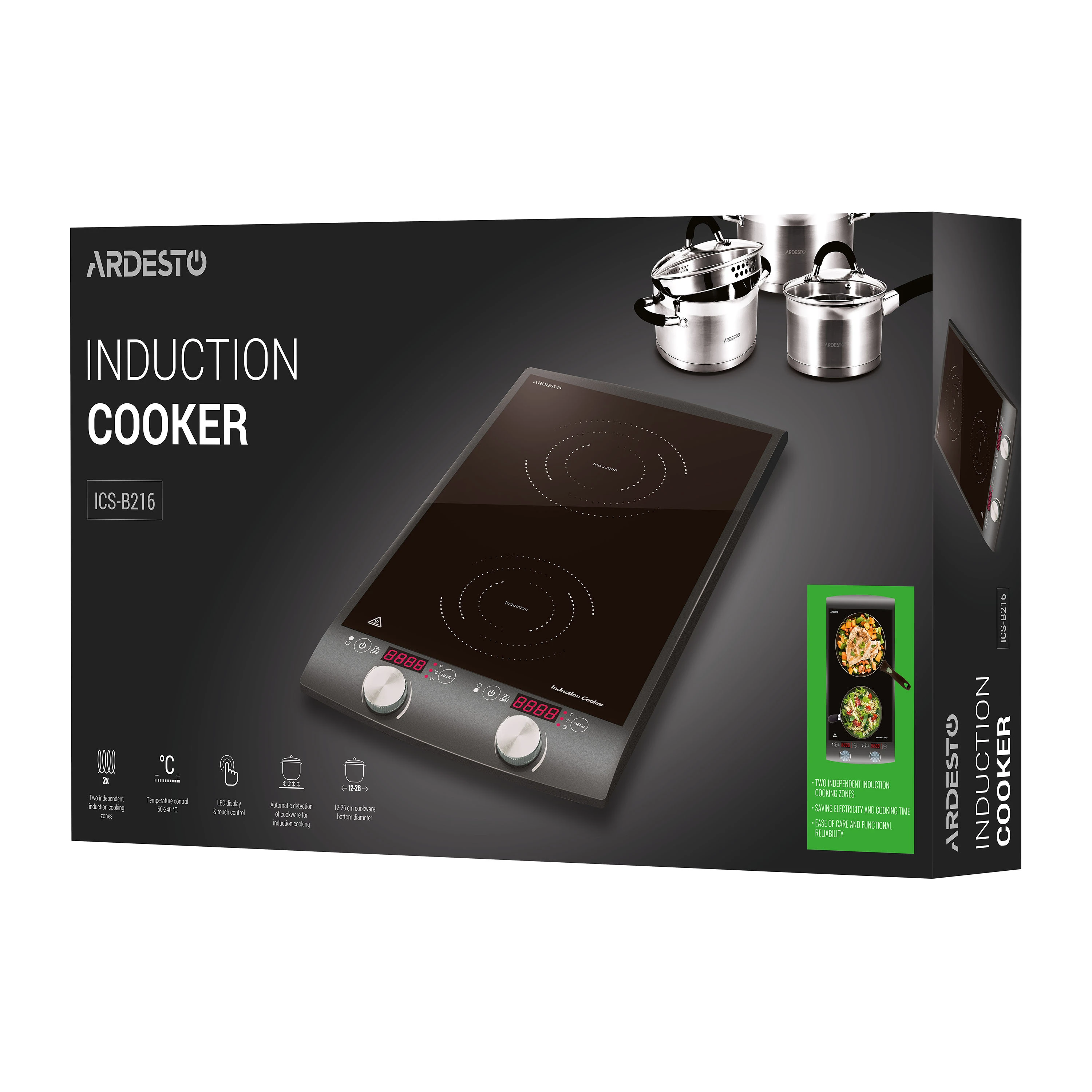 Плитка настільна Ardesto індукційна, конфорок - 2 на 1.3кВт + 1.6кВт вертик., керування - сенсорне,