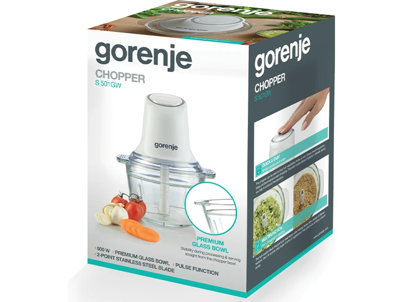 Подрібнювач можна використовувати для подрібнення фруктів, овочів, зелені або горіхів. Щоб почати подрібнення, просто натисніть на базовий блок приладу донизу. Завдяки імпульсному режиму можна здійснювати подрібнення з певними інтервалами, повністю контролюючи процес.