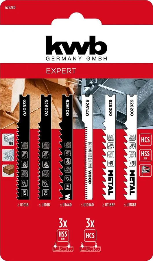 Багатофункціональний набір полотен для роботи з алюмінієм, листовим металом та твердою деревиною. Виготовлені з вуглецевої сталі HCS, що забезпечує міцність і гнучкість. Сумісні з усіма лобзиками з Т-подібним кріпленням.