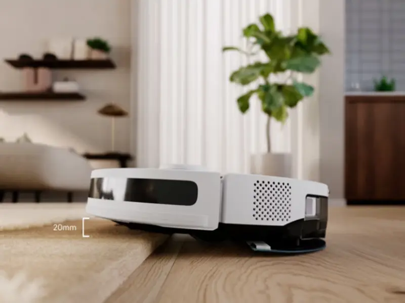 Технологія LiDAR дає змогу створити деталізовану карту вашого вибору та досягти оптимального вибору для кожної окремої кімнати. Ергономічні коліщатки пересуваються через 20-мм пороги1, а датчики обриву запобігають падінню2, завдяки чому ваш пілосос може ефективно прибрати в кожну куточку.