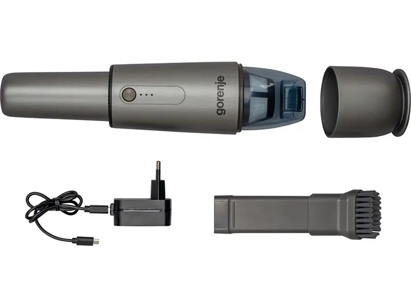 У комплект поставки пилососа входить додатковий кабель і адаптер, тому ви можете заряджати його де завгодно. Вбудований літієвий акумулятор працює до 12 хвилин після повного заряджання.
