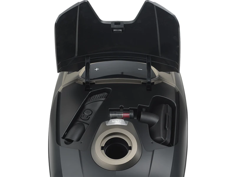 Необхідні насадки, як-от щілинна насадка та щітка для меблів, зручно зберігаються всередині пилососа — завжди під рукою. Вам більше ніколи не доведеться турбуватися про те, де їх знайти, і це значно полегшить прибирання.