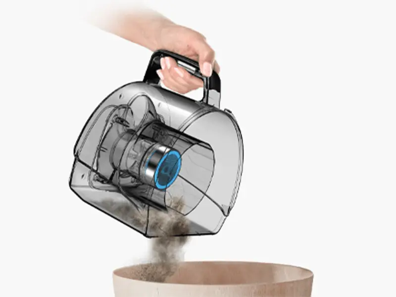 Турбіна Anti-Tangle запобігає намотуванню волосся і пилу на деталі пилососа, тому вам більше не доведеться видаляти сміття вручну. Весь бруд осідає на дні контейнера, вам залишається просто витрусити його у смітник.