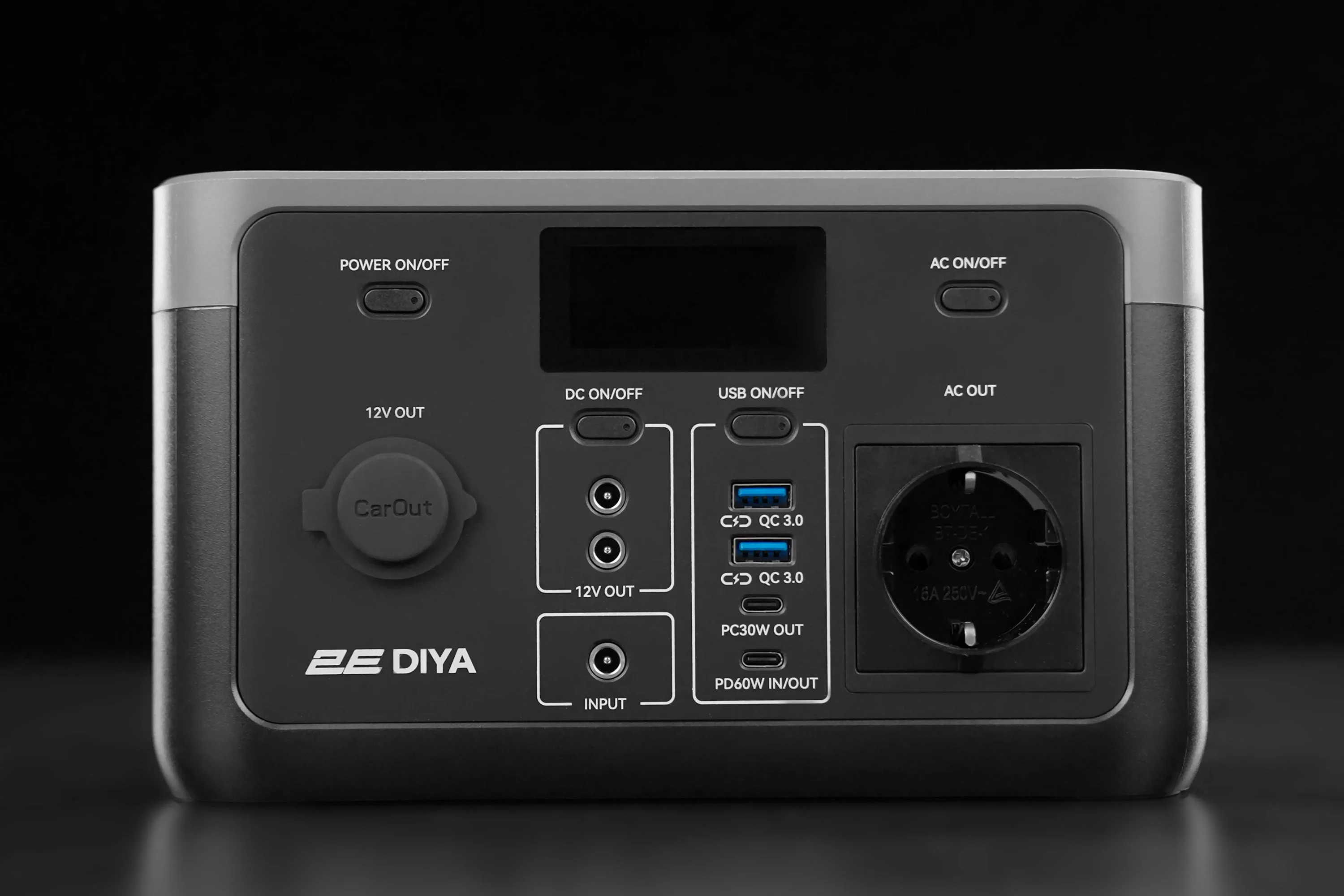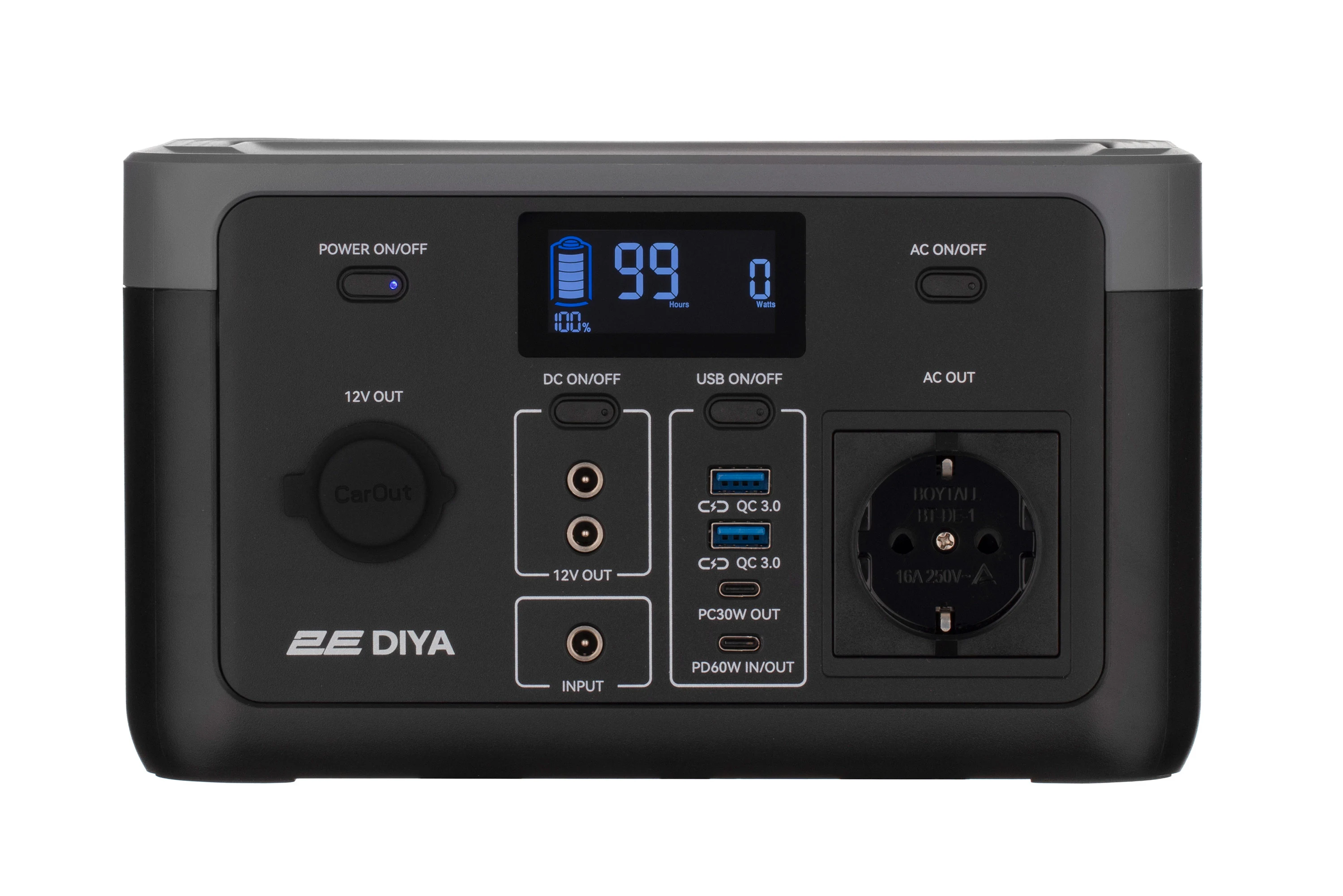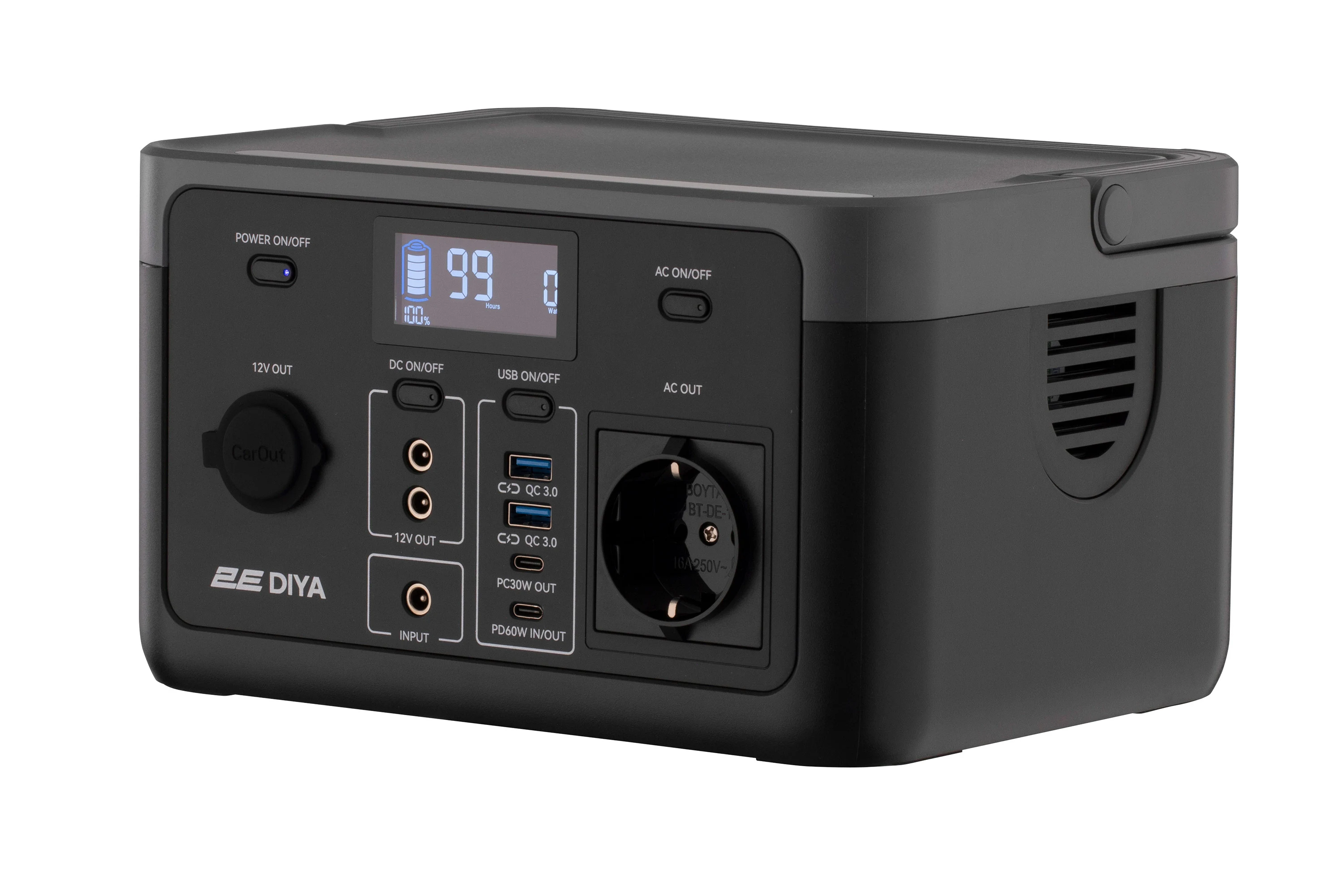 Портативна зарядна станція нового покоління 2Е DIYA надлегка та компактна з номінальною потужністю інвертора та чистою синусоїдою в 300 Вт і ємністю акумулятора LiFePO4 в 320 Вт/год володіє інноваційними функціями і технологіями, що робить її найкращим джерелом резервного або альтернативного живлення.