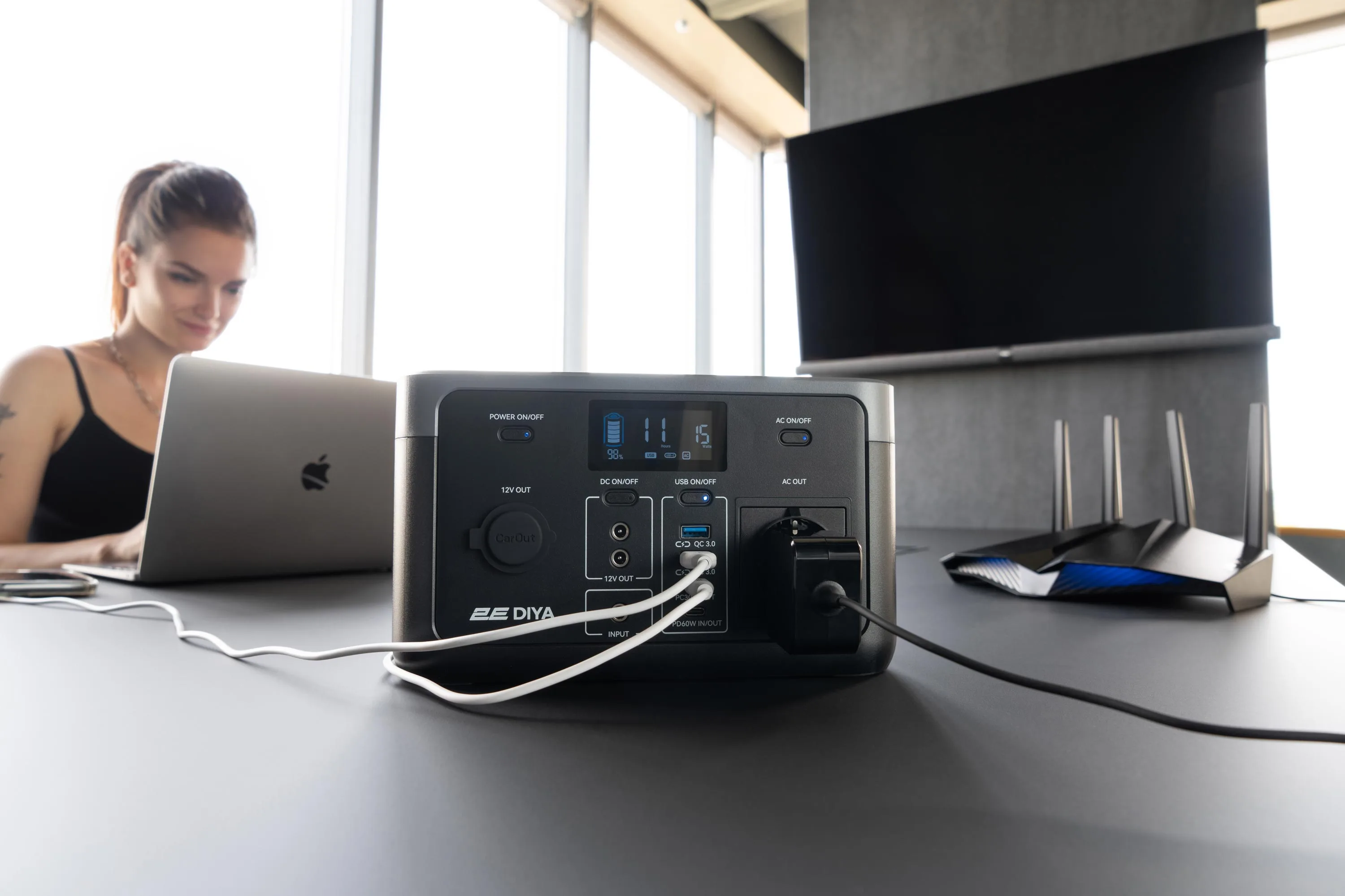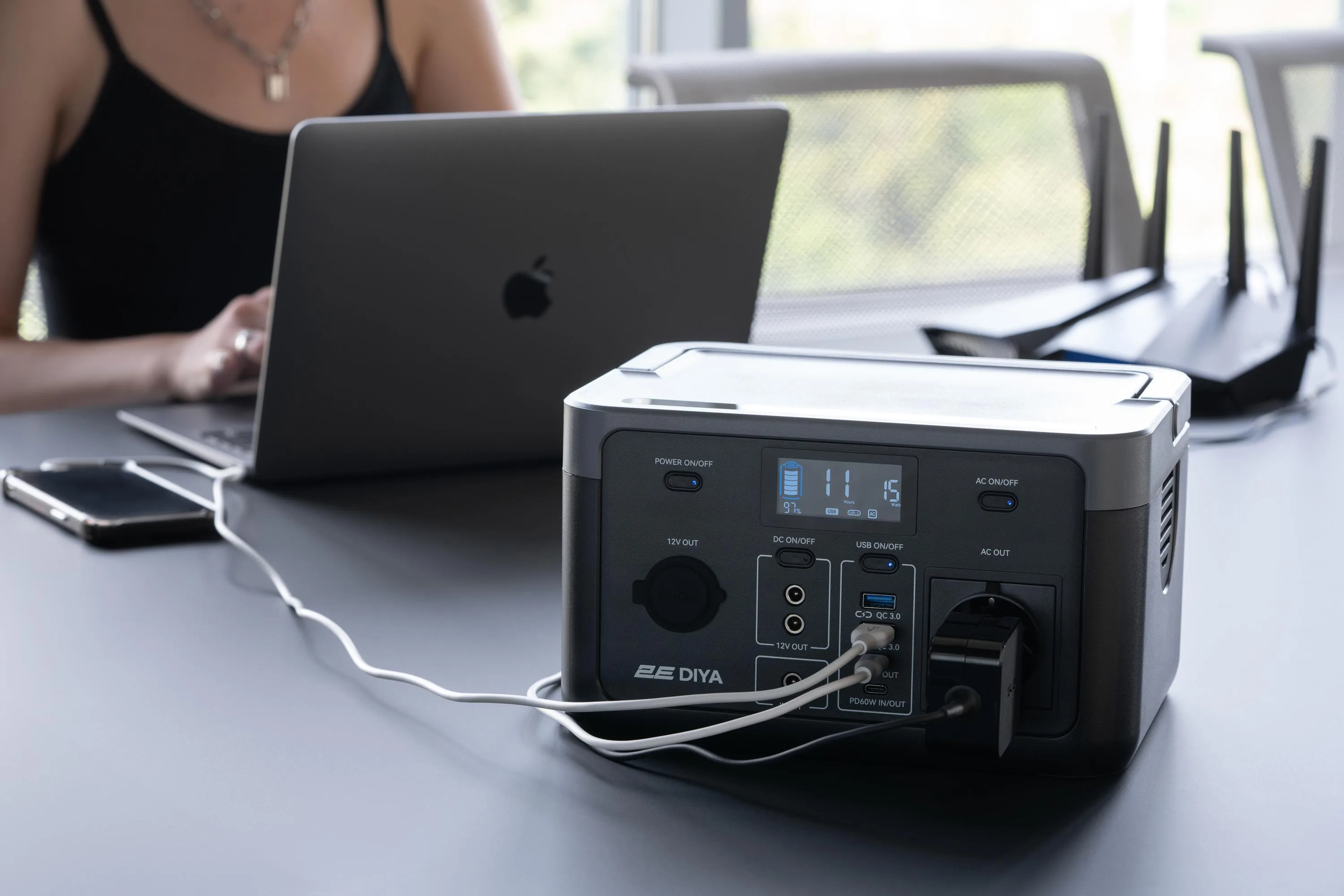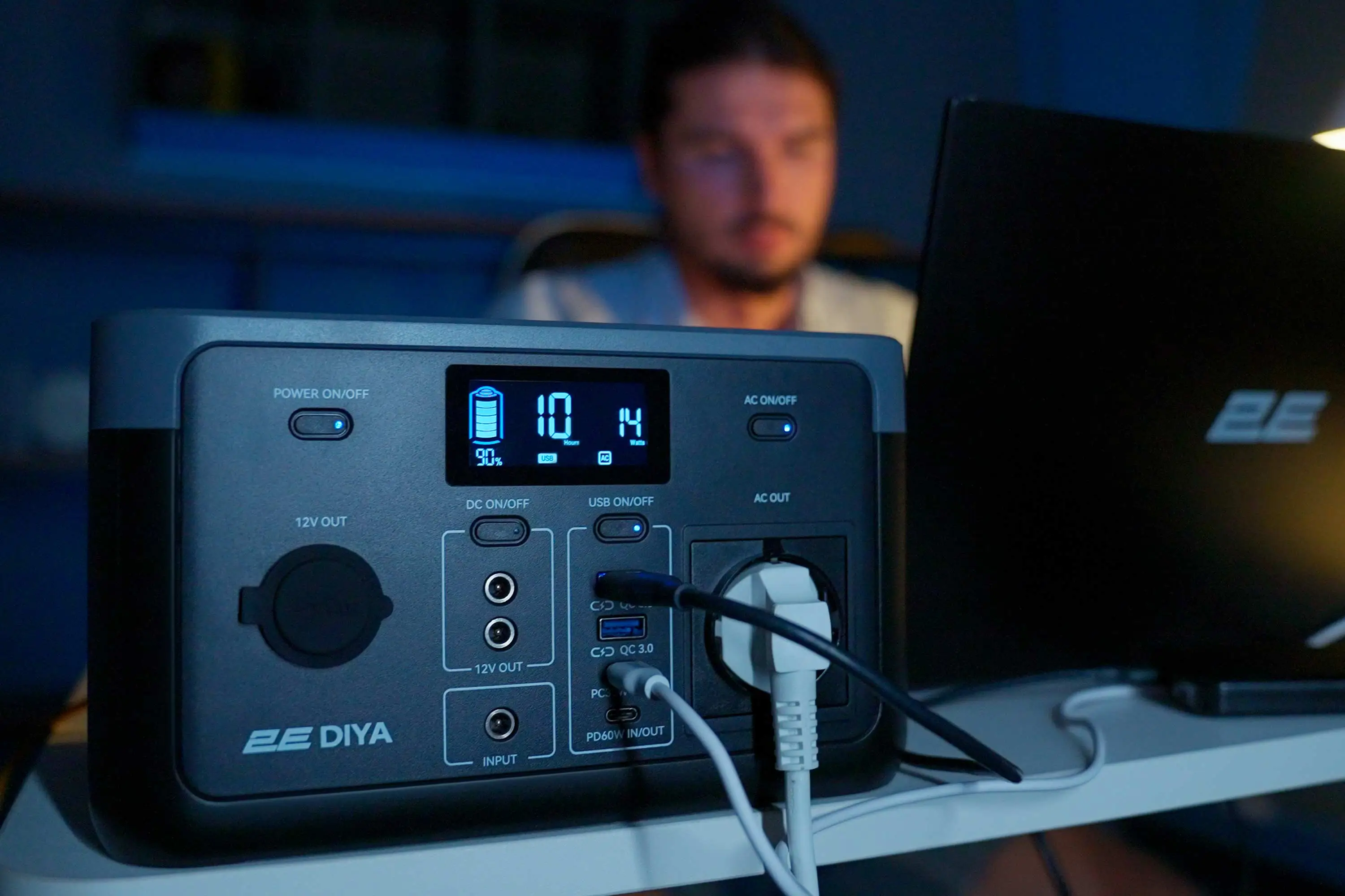 Портативна зарядна станція нового покоління 2Е DIYA надлегка та компактна з номінальною потужністю інвертора та чистою синусоїдою в 300 Вт і ємністю акумулятора LiFePO4 в 320 Вт/год володіє інноваційними функціями і технологіями, що робить її найкращим джерелом резервного або альтернативного живлення.