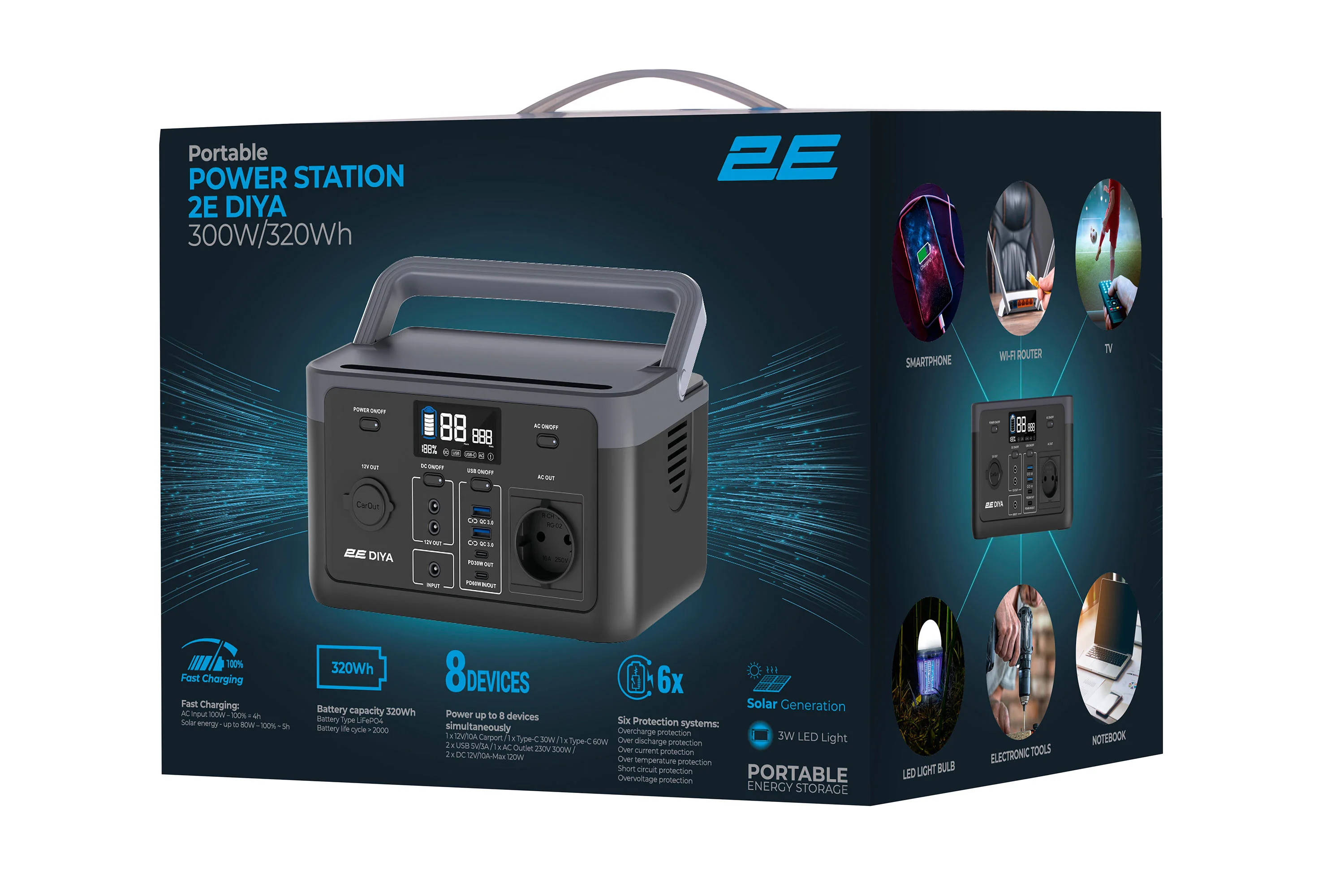 Портативна електростанція 2Е Diya, 300 Вт, 320 Вт/год, швидка зарядка