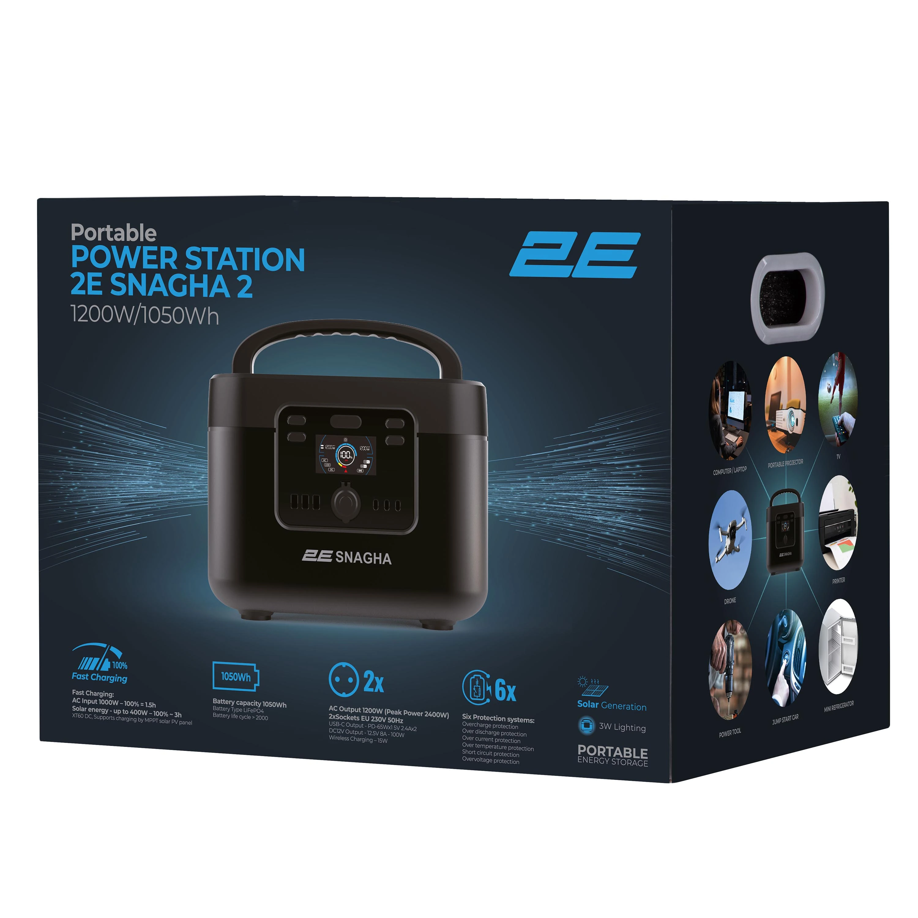 Портативна зарядна станція нового покоління 2Е Snagha 2 – це оновлена та потужніша версія вже популярної 2Е Snagha. Номінальна потужність інвертора із чистою синусоїдою становить 1 200 Вт, а ємність LiFePO4-акумулятора – 1 050 Вт·год. Модель оснащено інноваційними функціями та технологіями, що робить її оптимальним рішенням для резервного або альтернативного живлення.