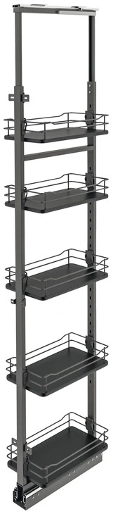 Повний комплект висувної шафи пенала для кухні з 5 дерев'яними полицями антрацит, для корпуса 300 мм