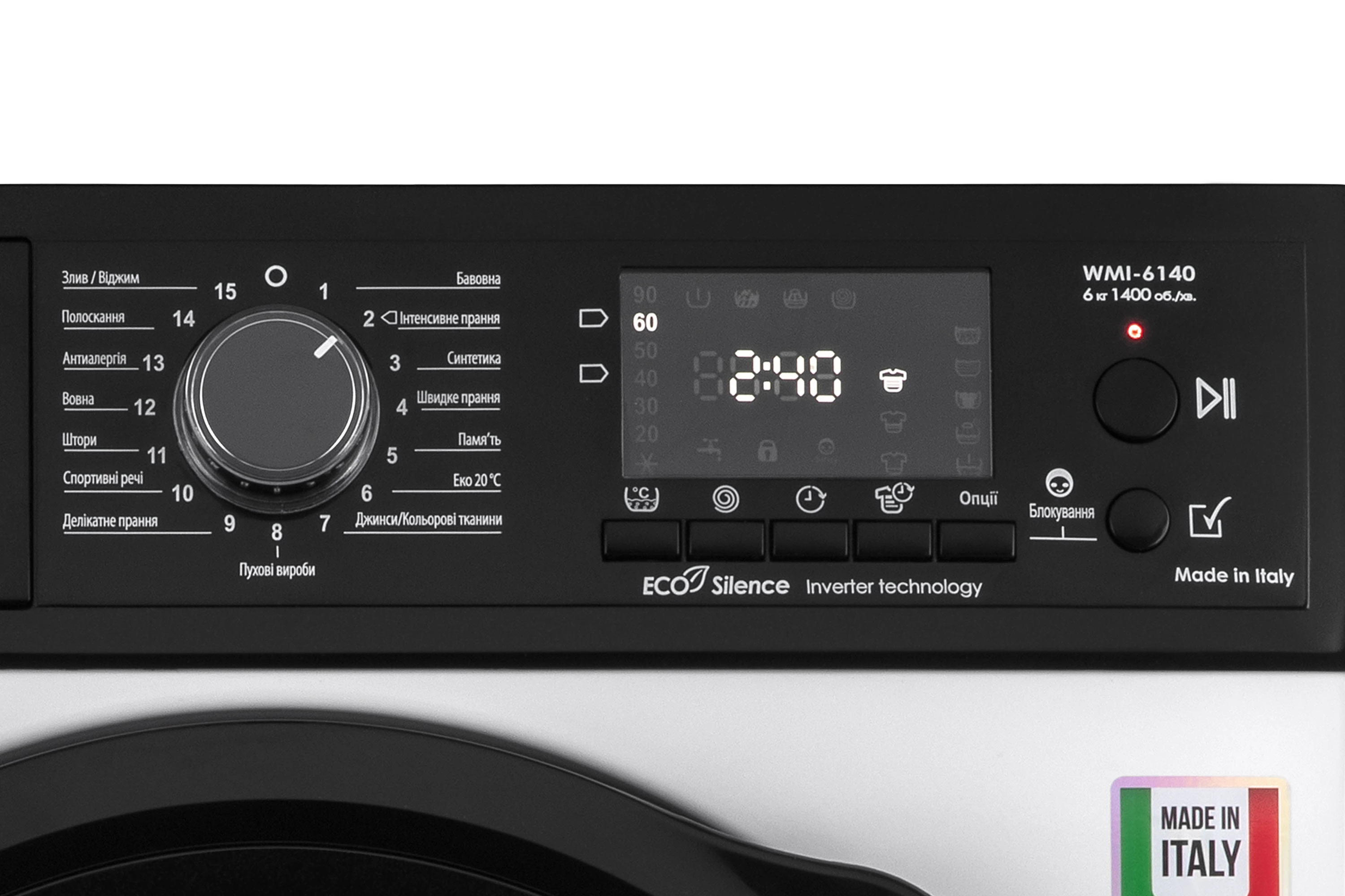 - Програми Бавовна; Вовна; Швидке прання; Антиалергія; Інтенс
