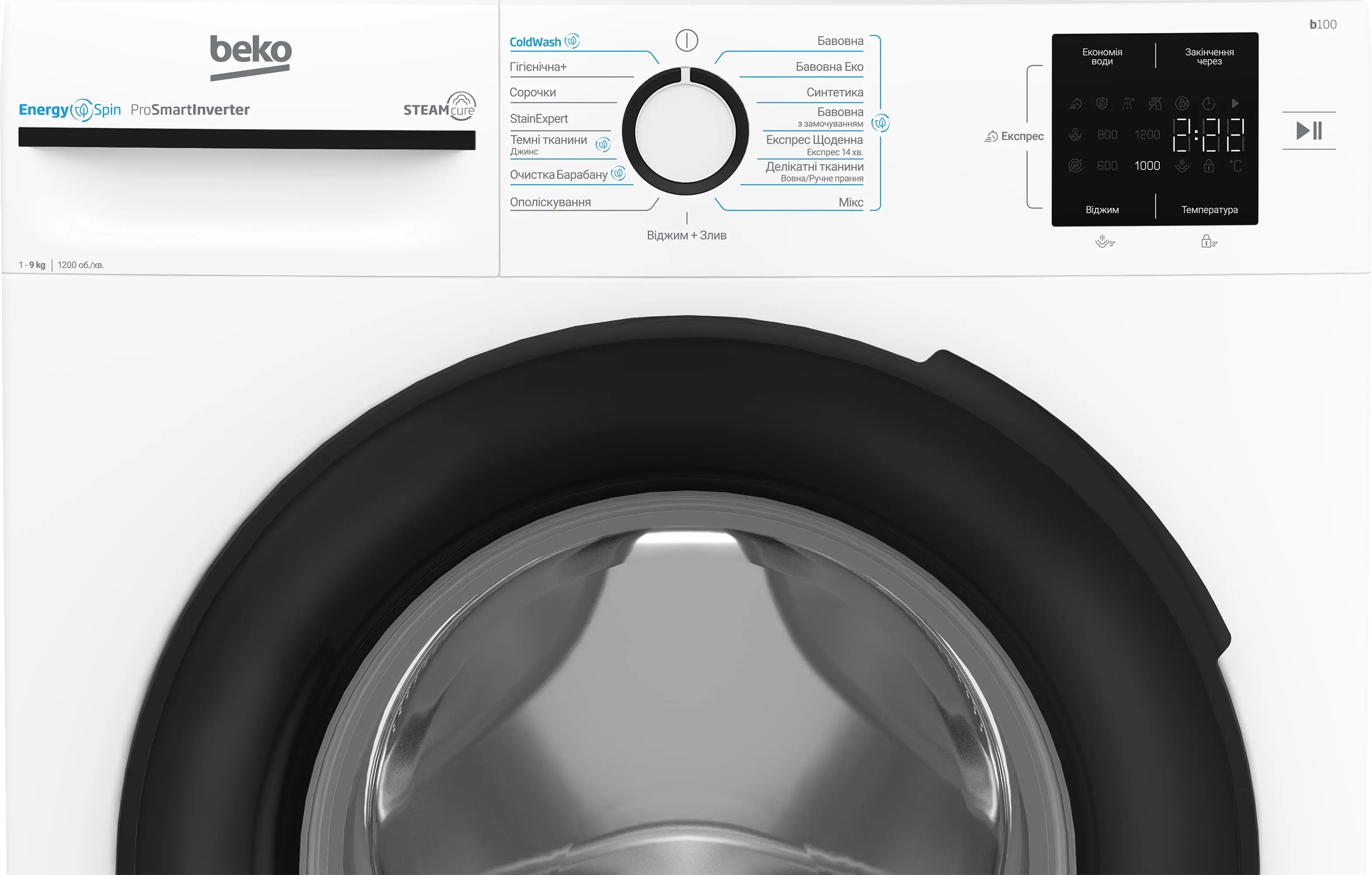 Пральна машина Beko фронтальна, 9кг, 1200, A+++, 55см, дисплей, інвертор, пара, білий