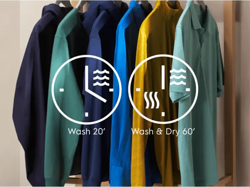 OneGo 20/60 хв дає змогу прати й сушити невеликі змішані завантаження лише за годину чи виконувати прання всього за 20 хвилин. Обирайте швидкий і зручний догляд за одягом, коли поспішаєте.