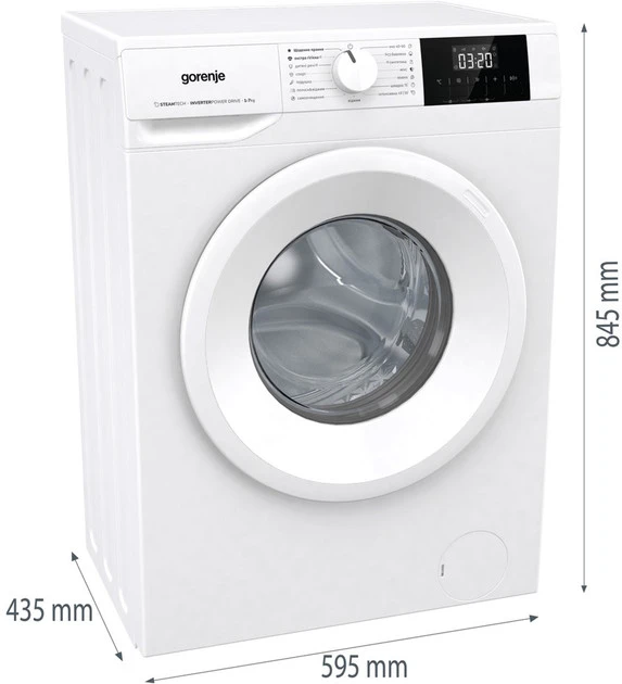 Пральна машина Gorenje фронтальна, 7кг, 1200, A+, 43.5см, дисплей, пар, інвертор, білий