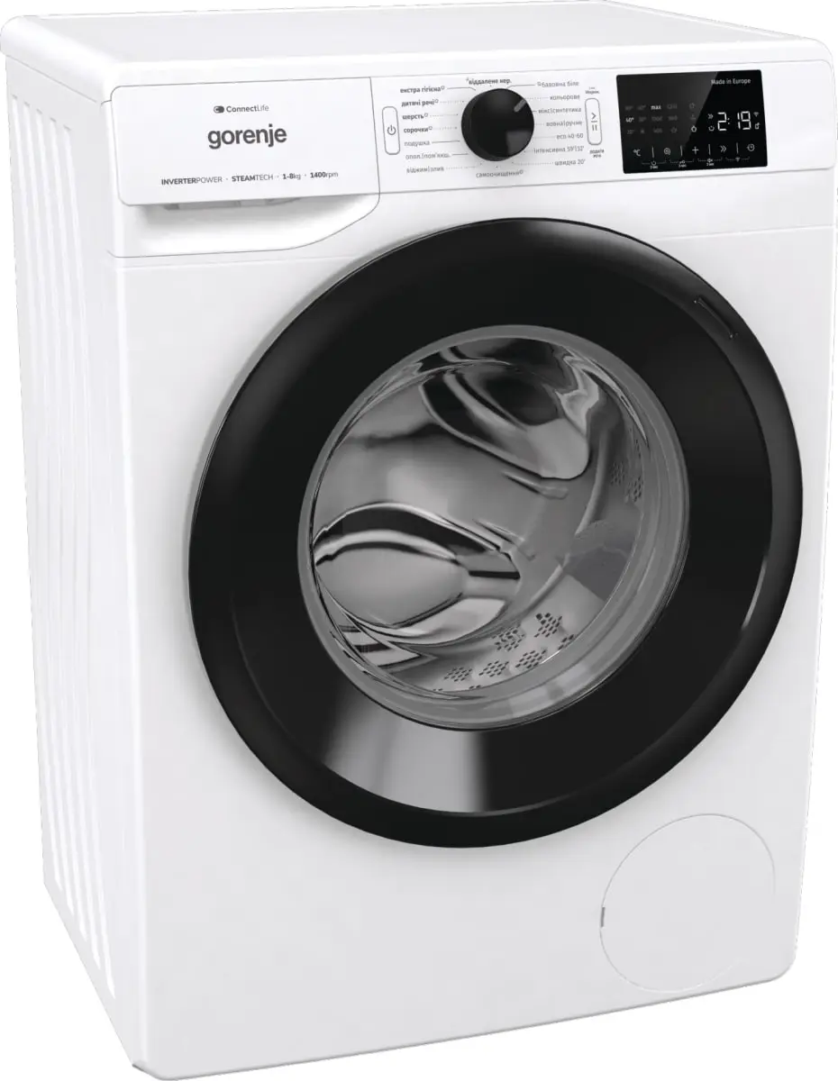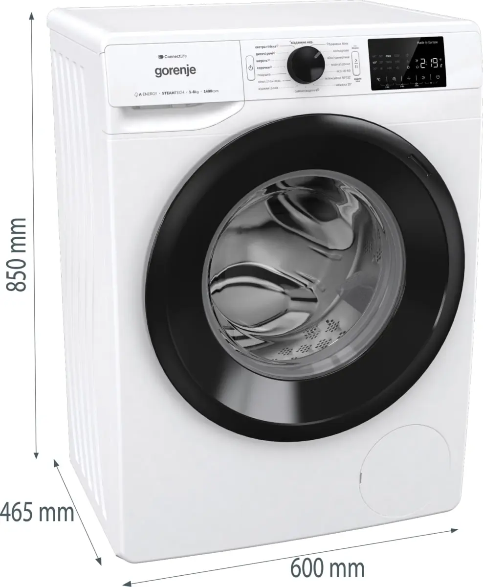 Пральна машина Gorenje фронтальна, 8кг, 1400, A+++, 46,5см, дисплей, інвертор, пара, Wi-Fi, білий