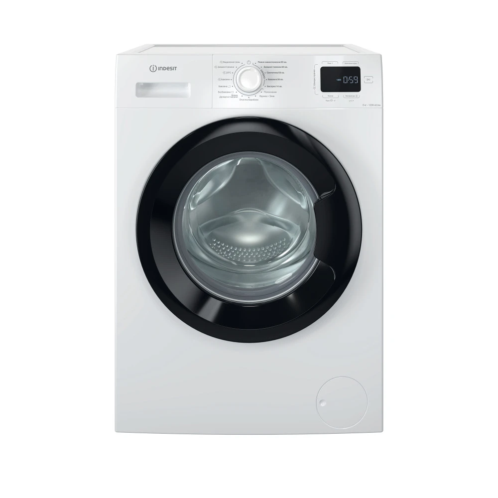 Пральна машина Indesit фронтальна, 6кг, 1200, A+++, 44.6см, дисплей, пара, інвертор, люк чорний, біл