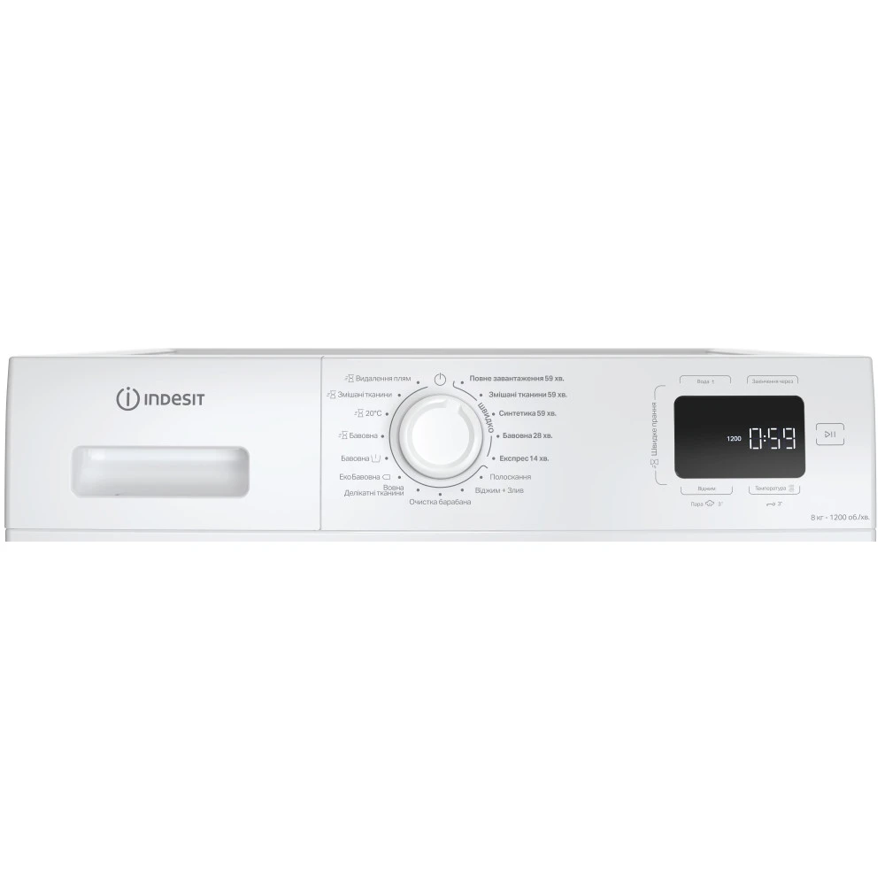 Пральна машина Indesit фронтальна, 8кг, 1200, A+++, 54.6см, дисплей, пара, інвертор, люк чорний, біл